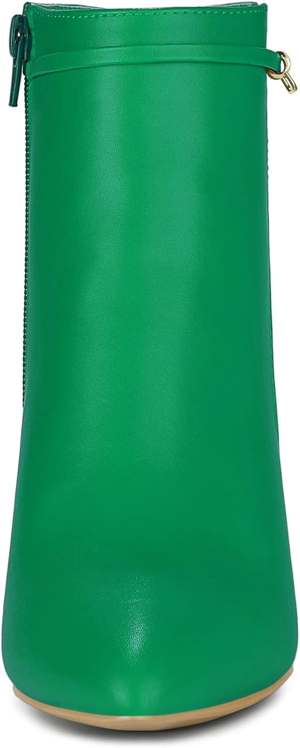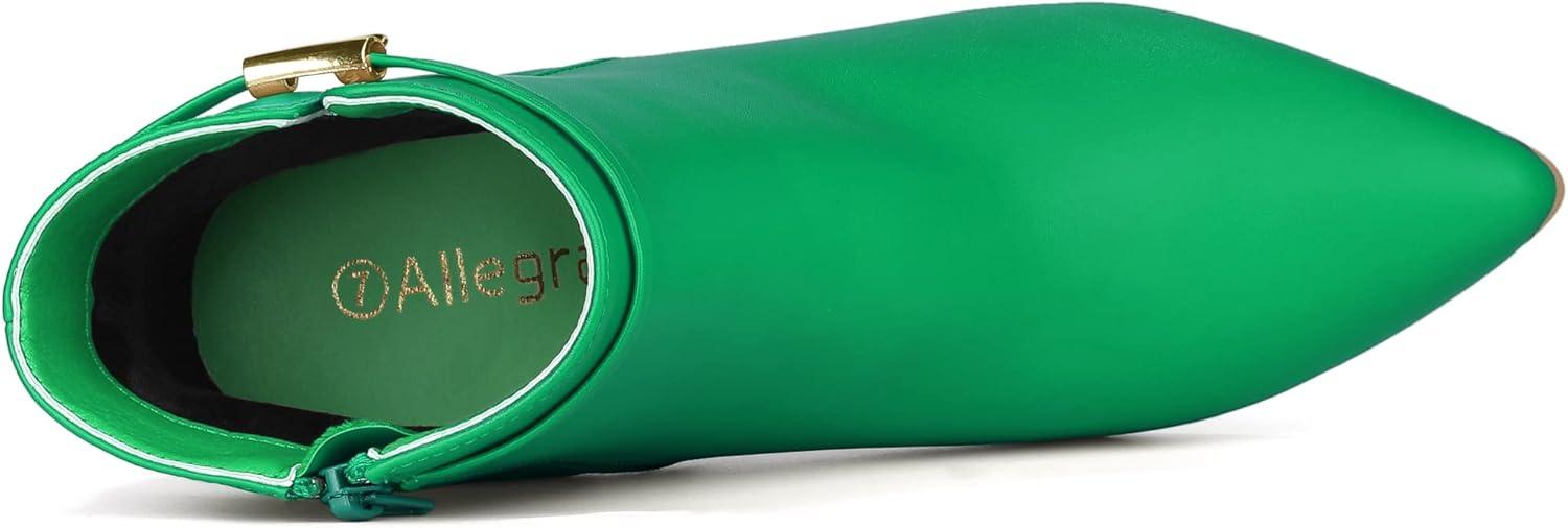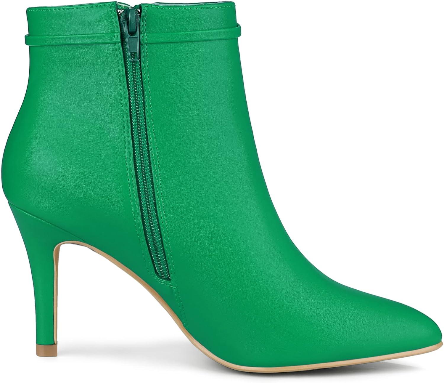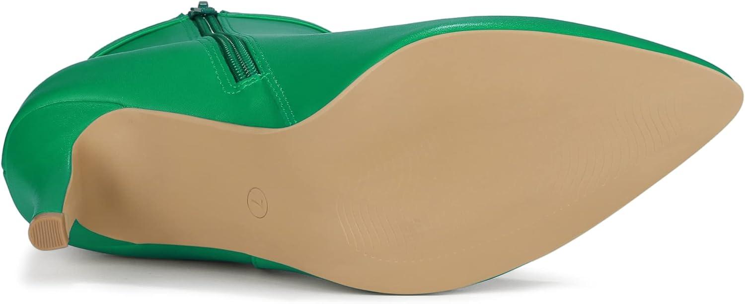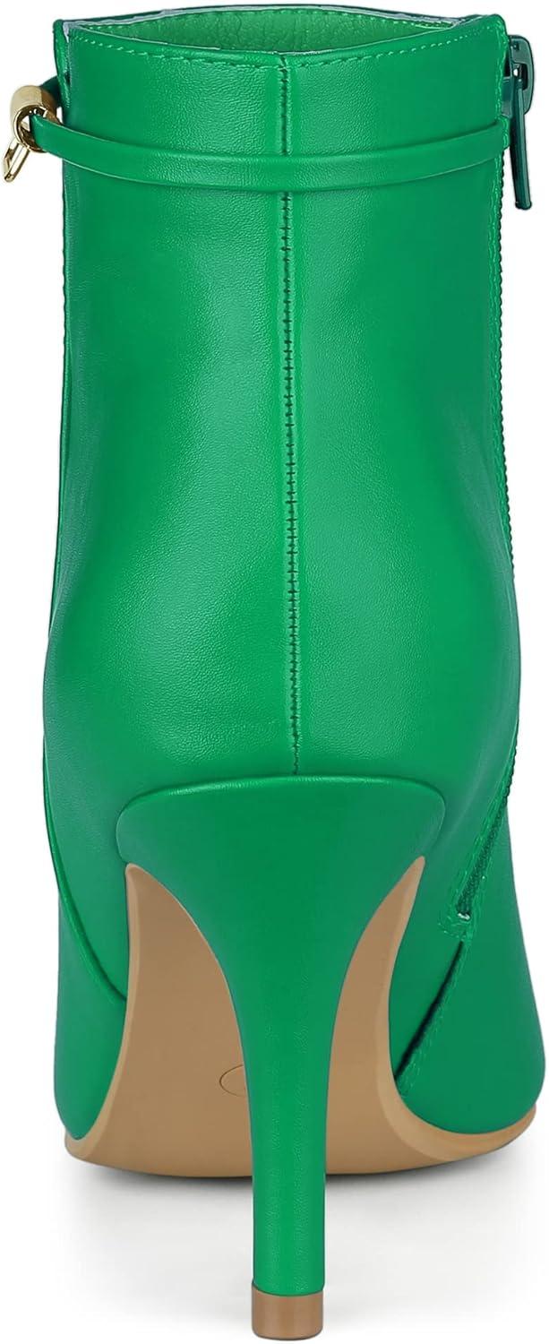 Allegra K Women's Pointy Toe Zipper Stiletto Heel Ankle Boots(Green)