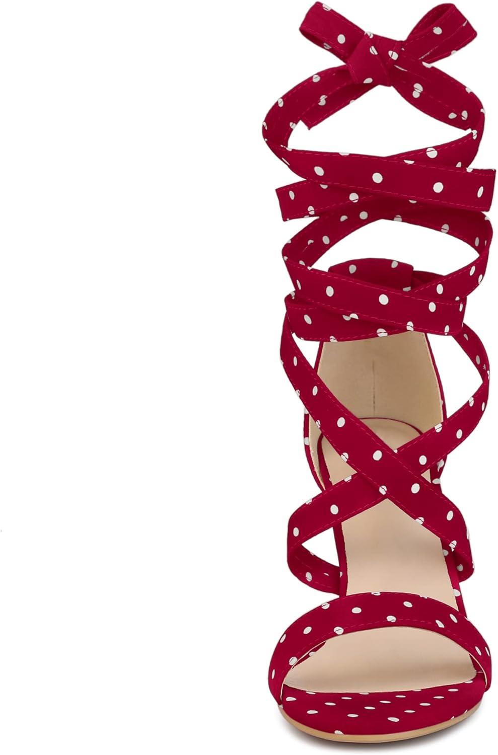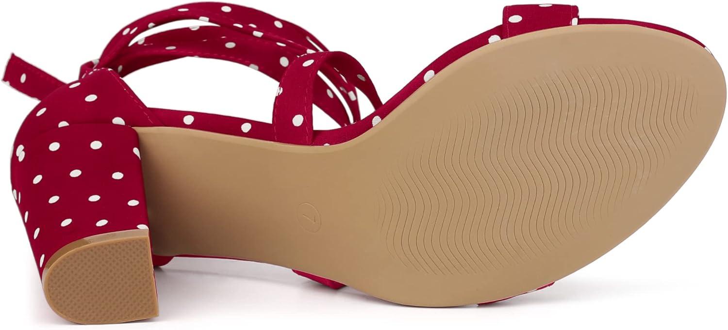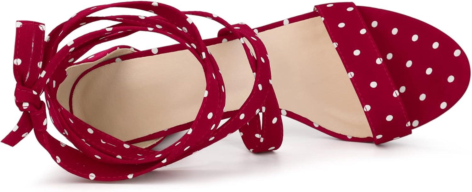 Allegra K Women’s Polka Dots Strappy Heels Lace Up Chunky Heels Sandals(Red)
