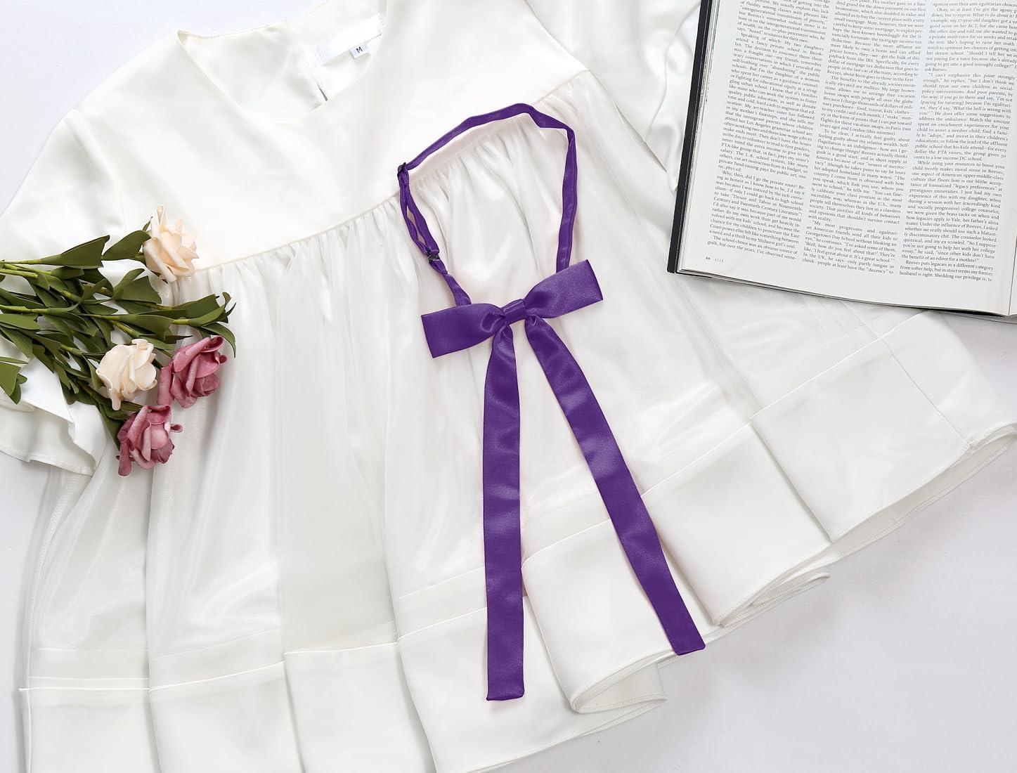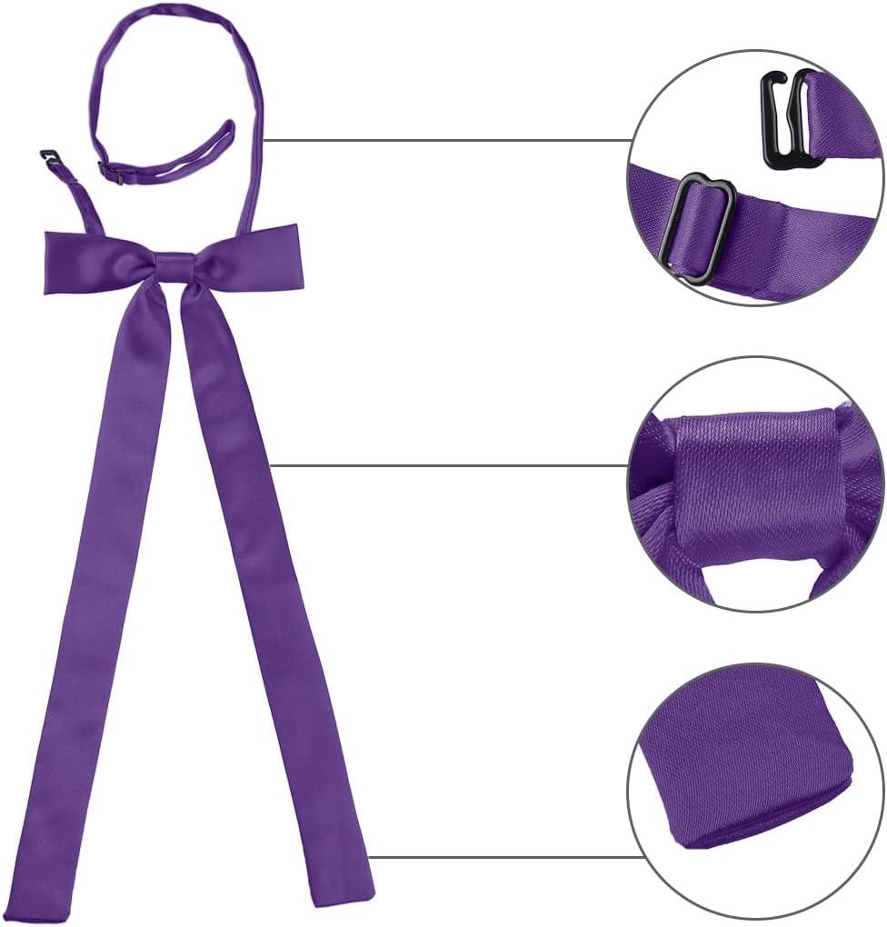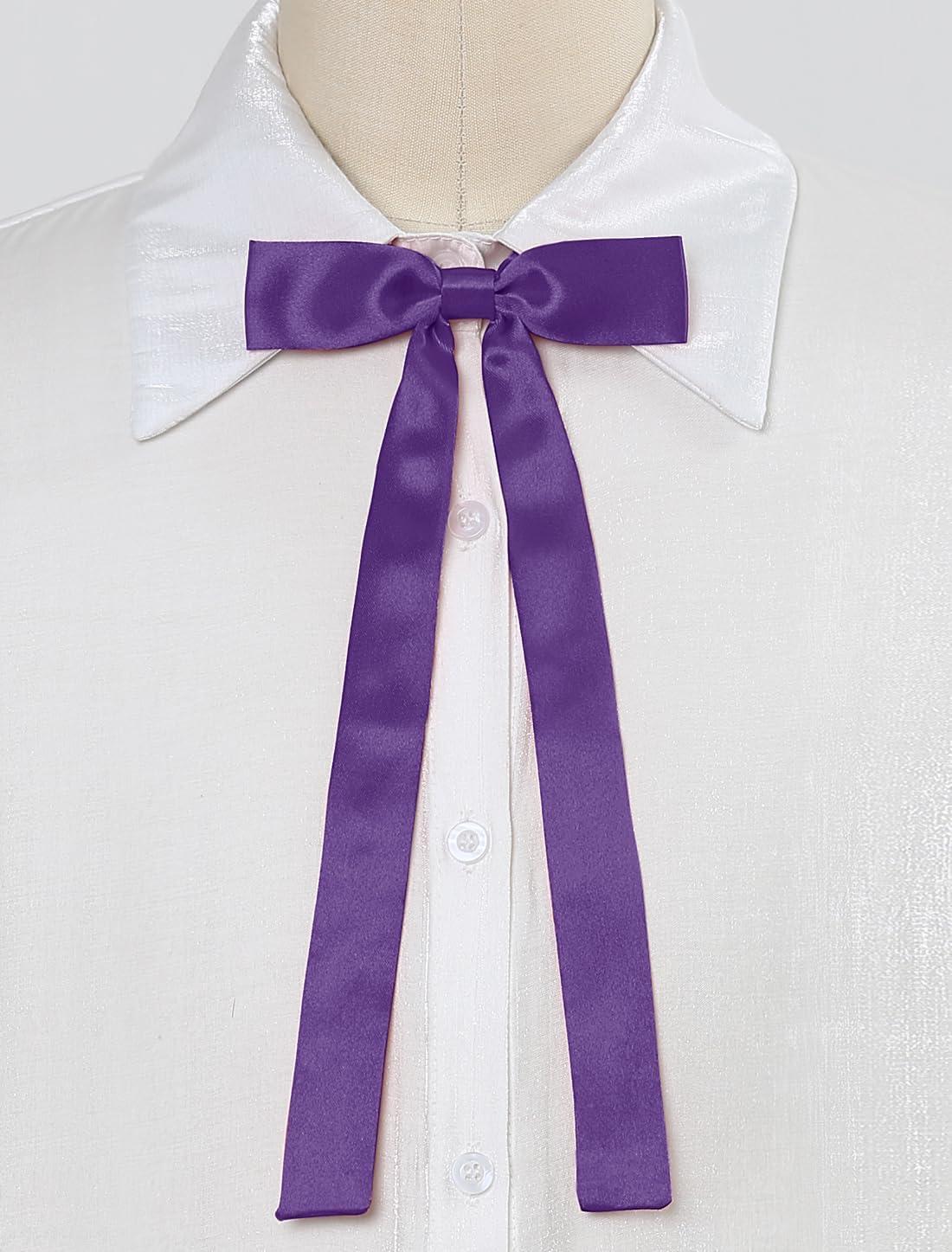 Allegra K Women’s Pre-Tied Adjustable String Bow Tie with Long Ribbon Solid Color Uniform Bowties(Purple)