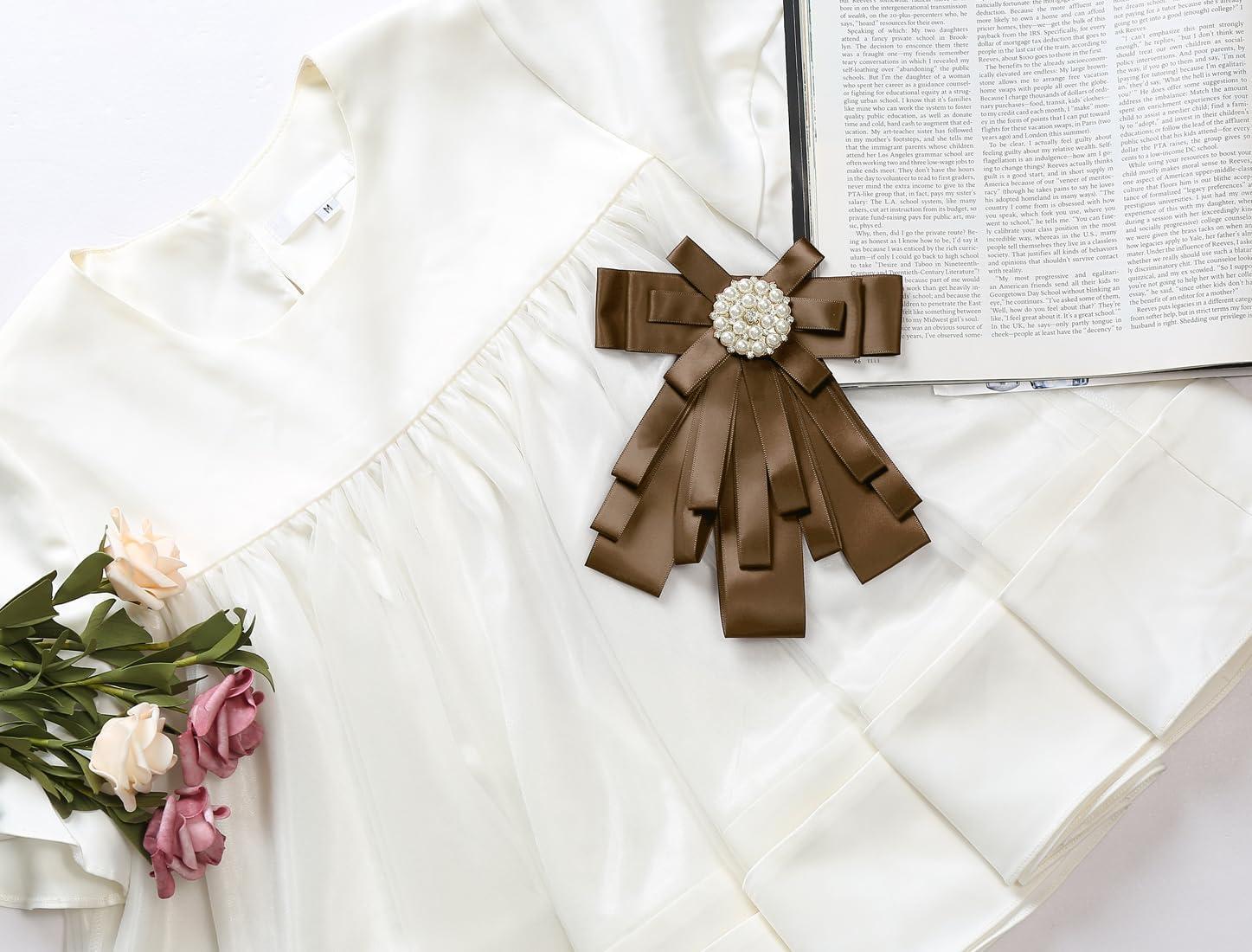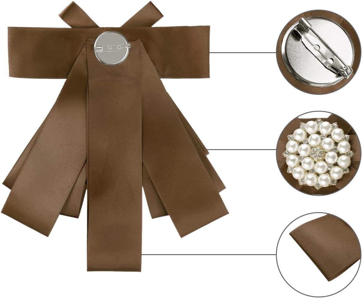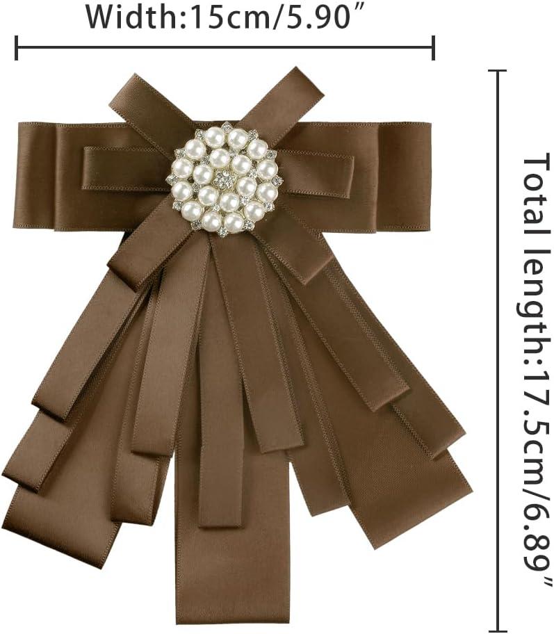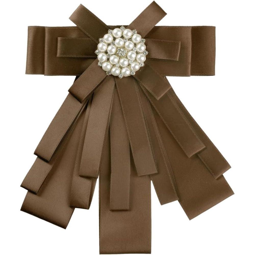 Allegra K Women's Pre-tied Bowknot Beads Bow Tie Elegant Large Ribbon Brooch(Brown)