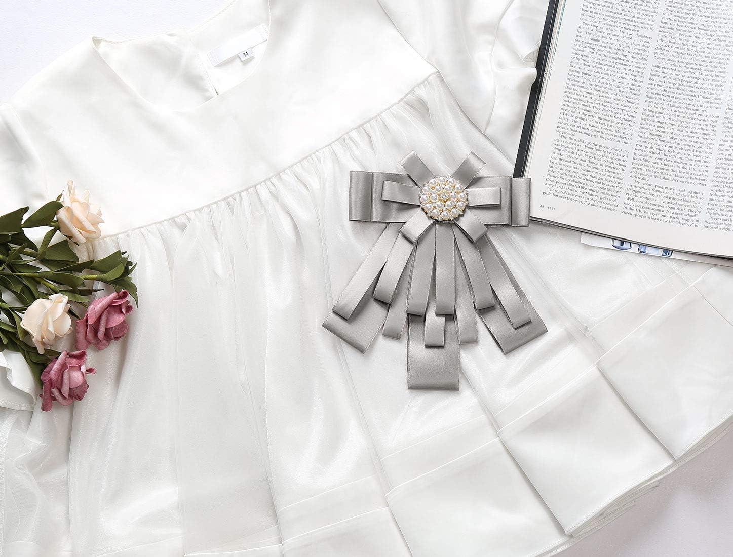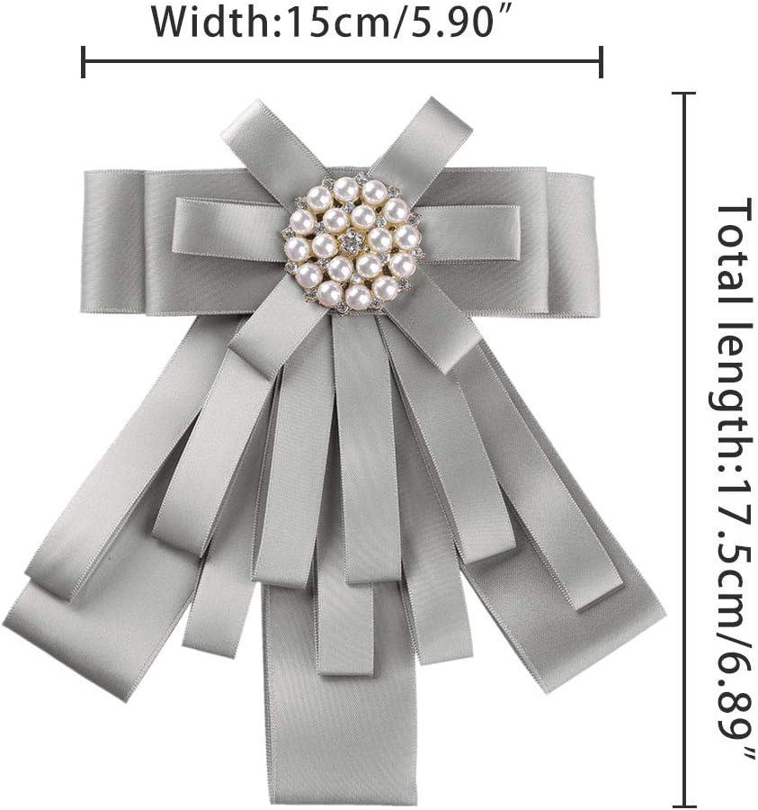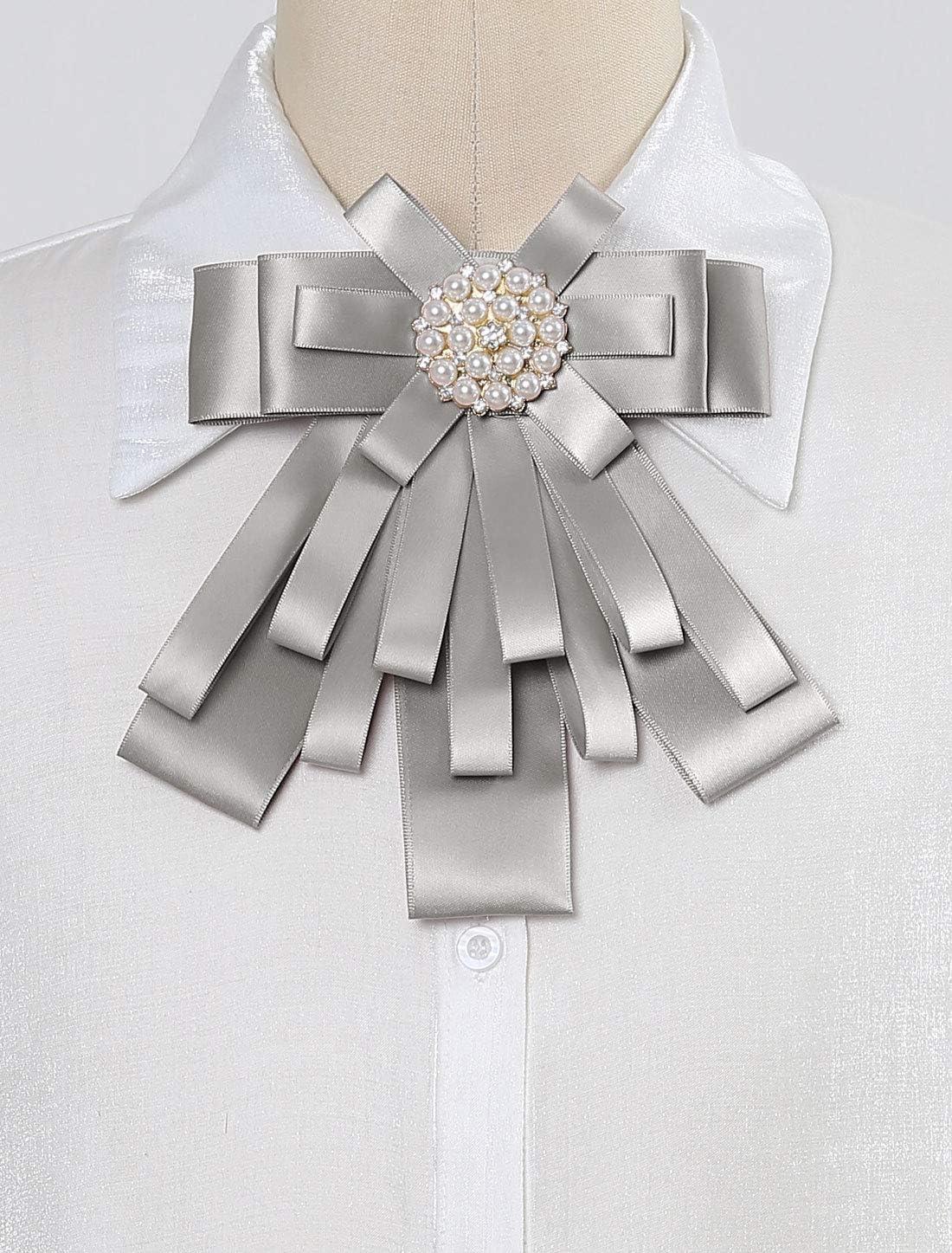 Allegra K Women's Pre-tied Bowknot Beads Bow Tie Elegant Large Ribbon Brooch(Grey)