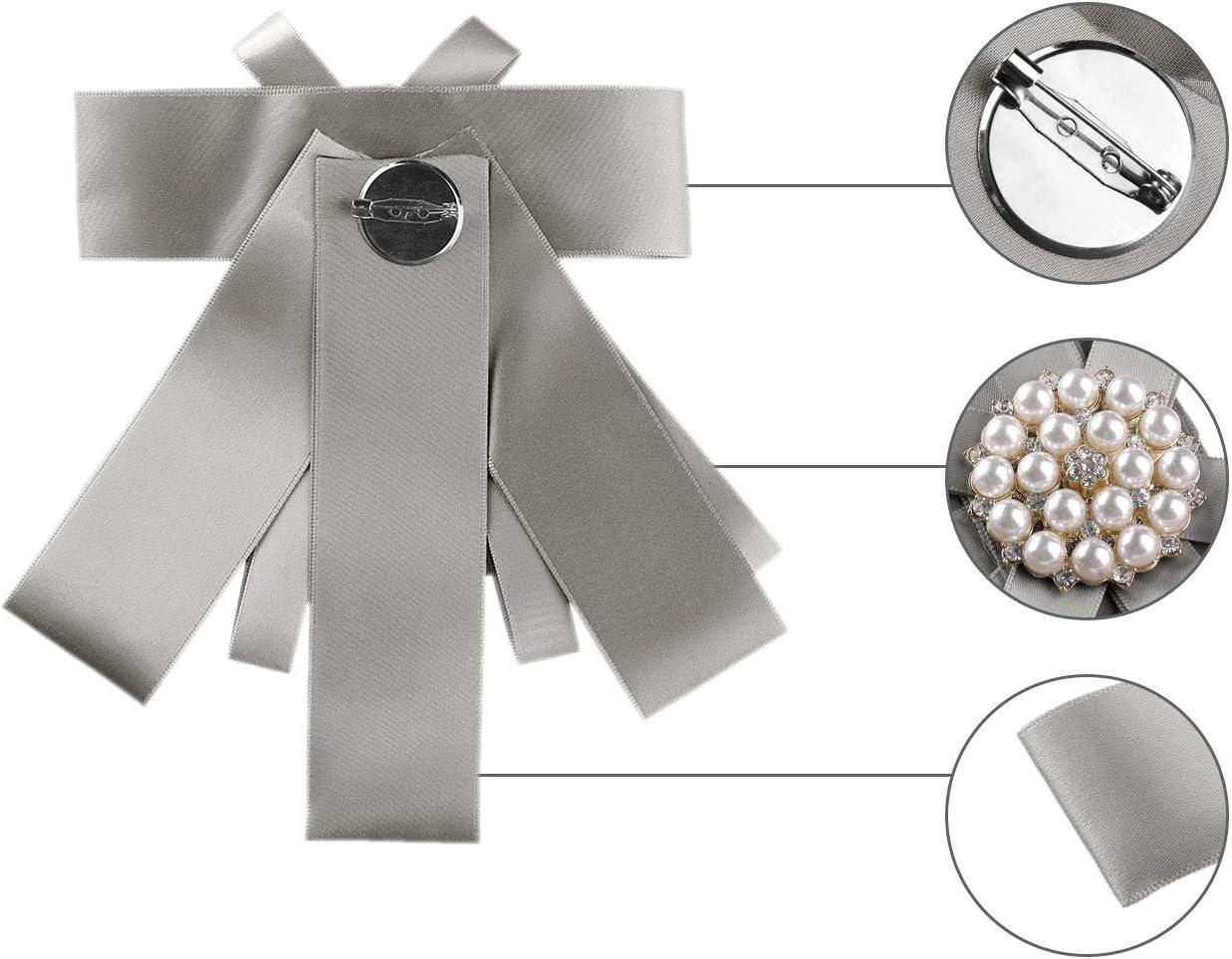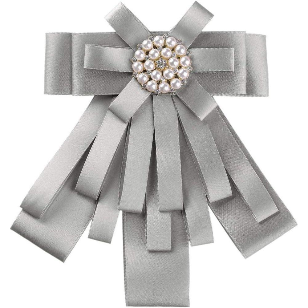 Allegra K Women’s Pre-tied Bowknot Beads Bow Tie Elegant Large Ribbon Brooch(Grey)