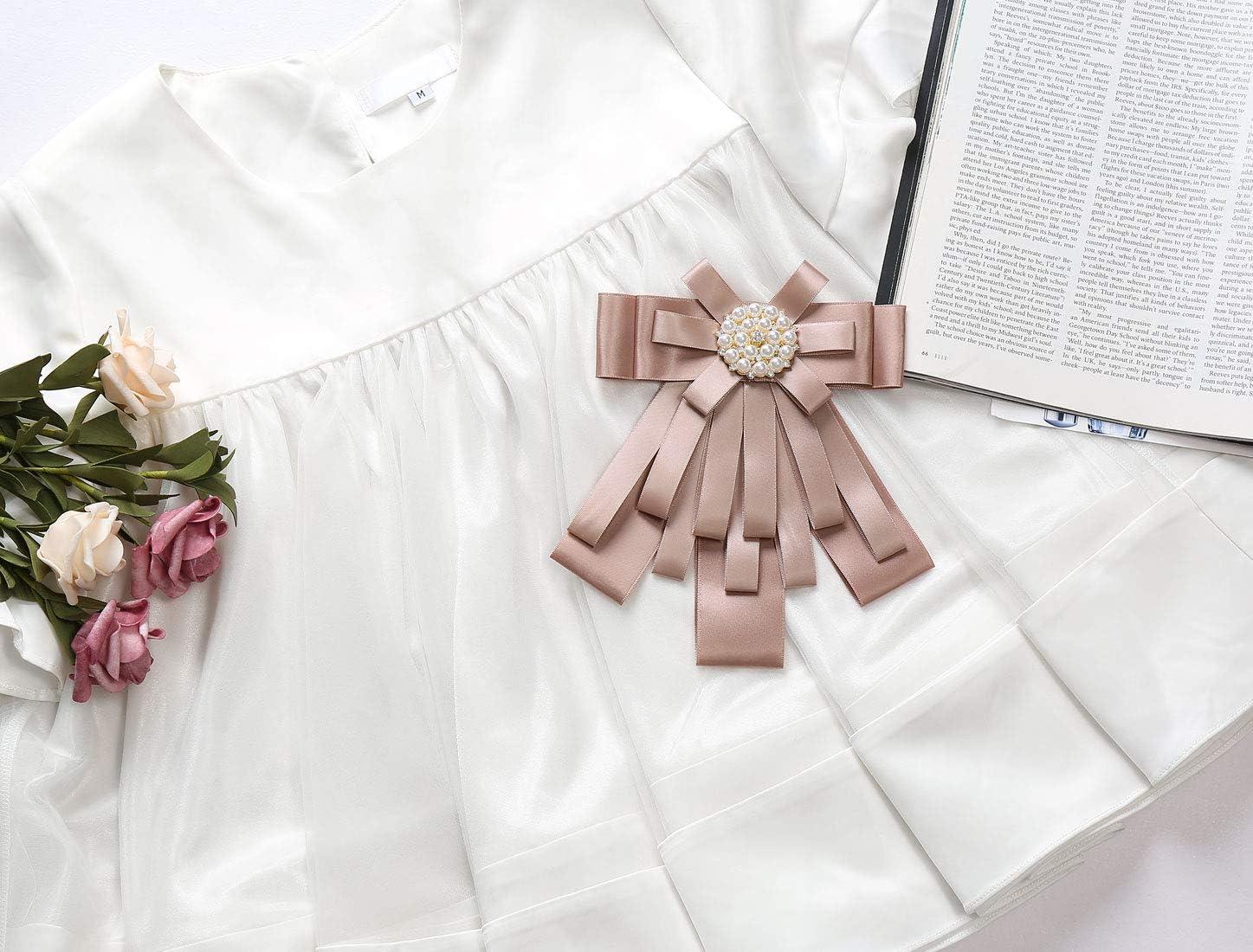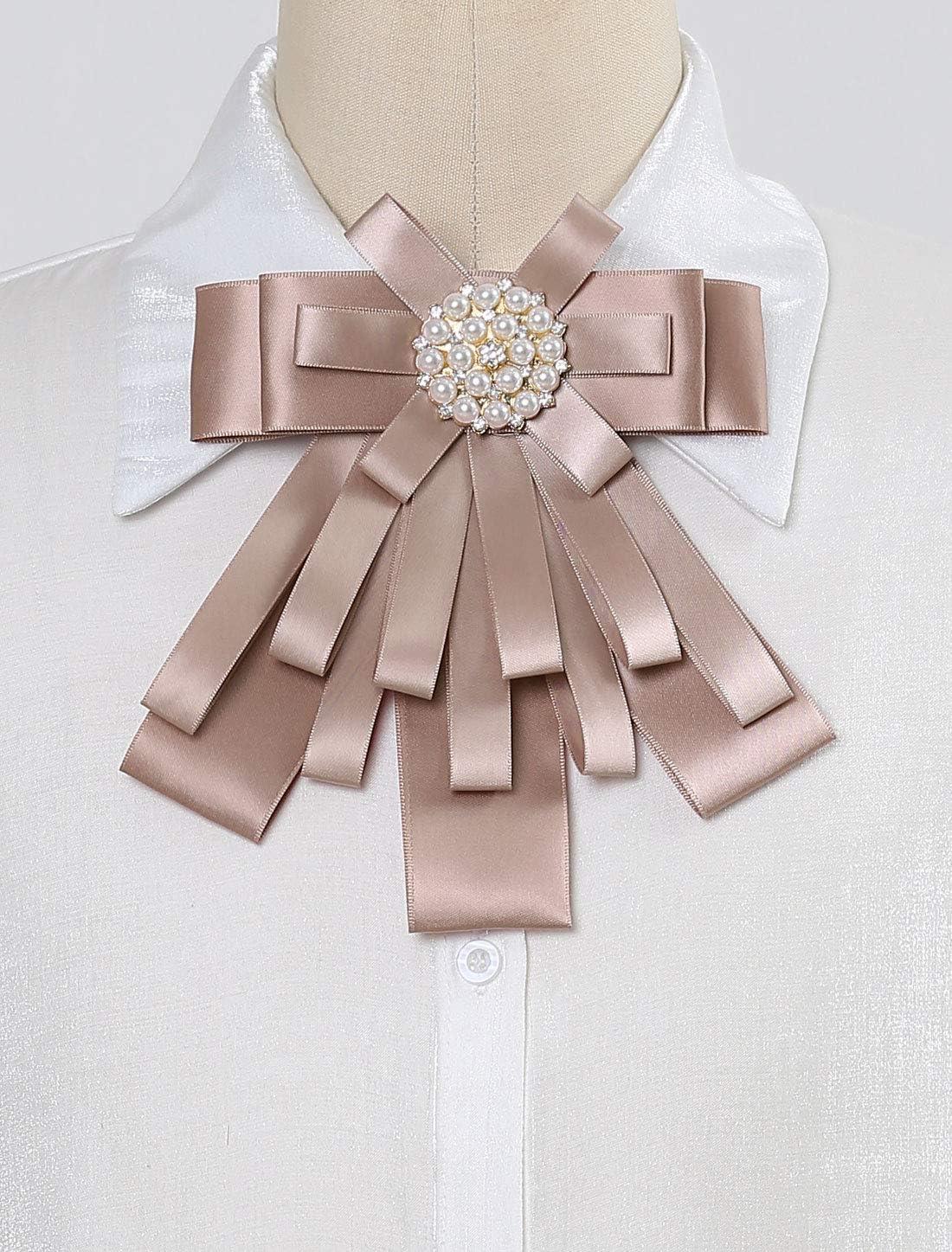 Allegra K Women’s Pre-tied Bowknot Beads Bow Tie Elegant Large Ribbon Brooch(Light Pink)