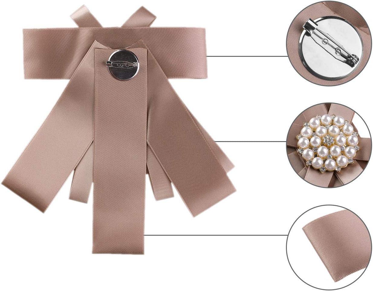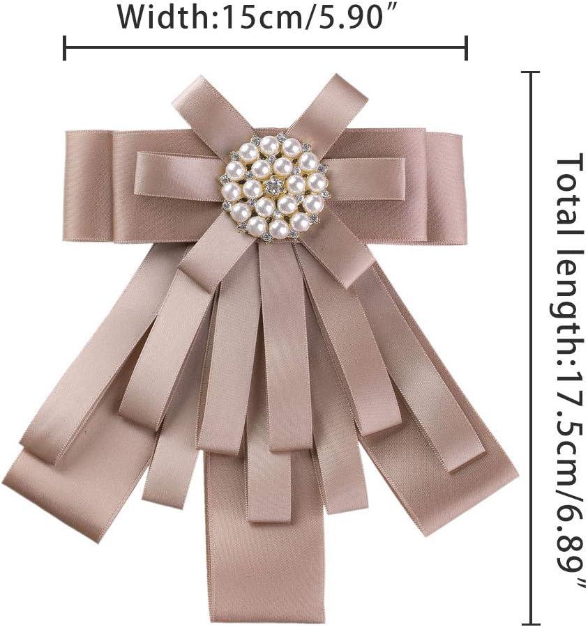 Allegra K Women’s Pre-tied Bowknot Beads Bow Tie Elegant Large Ribbon Brooch(Pink)
