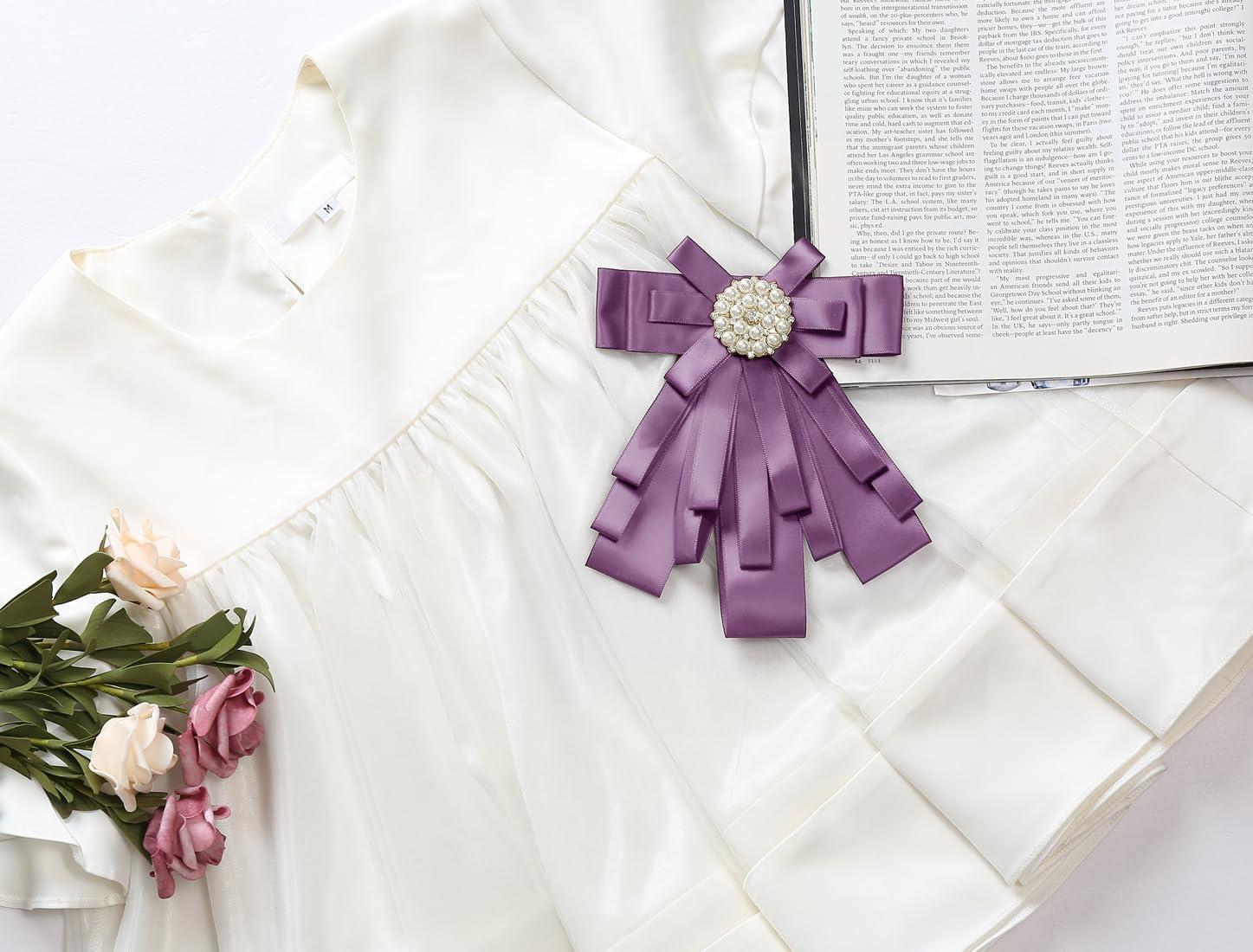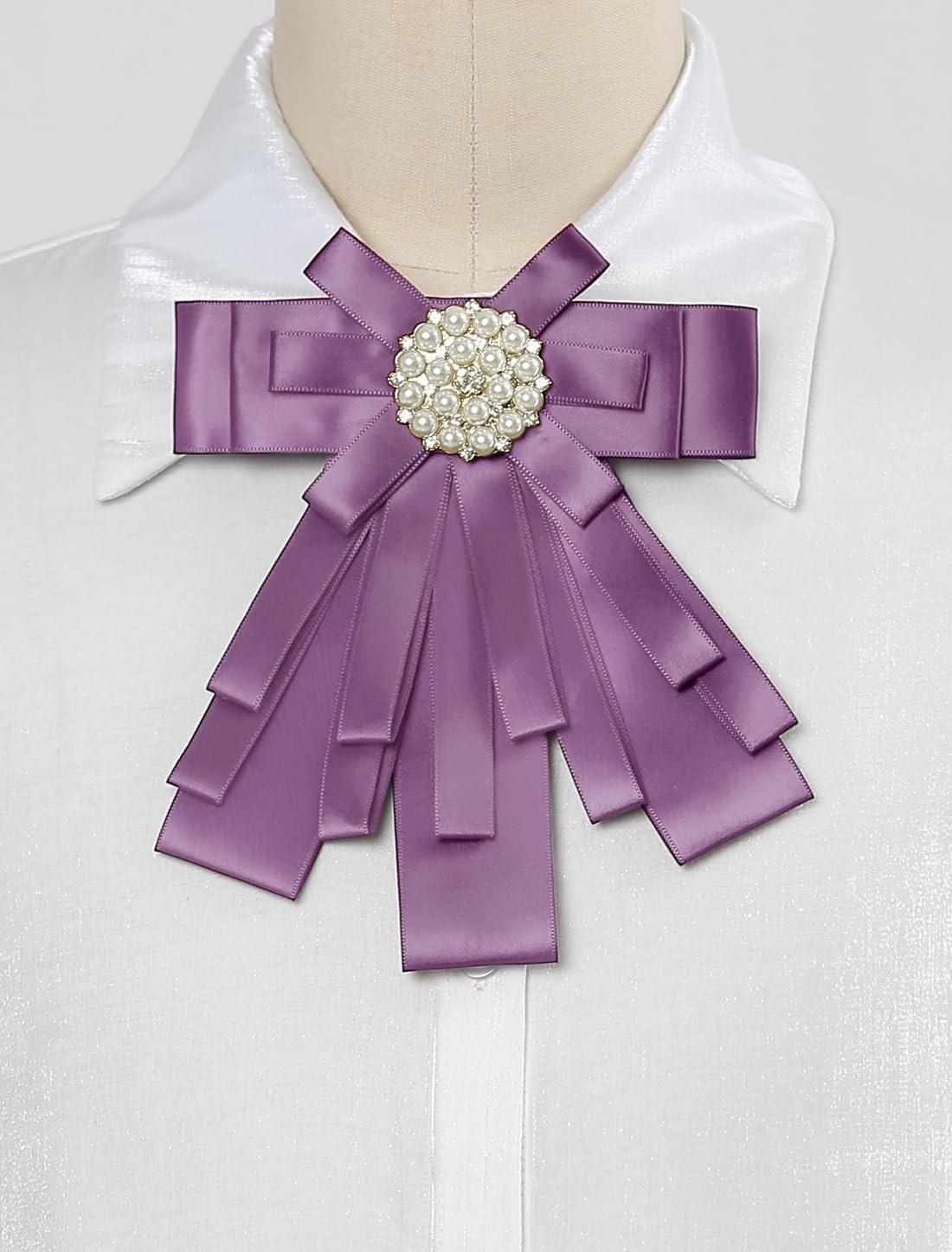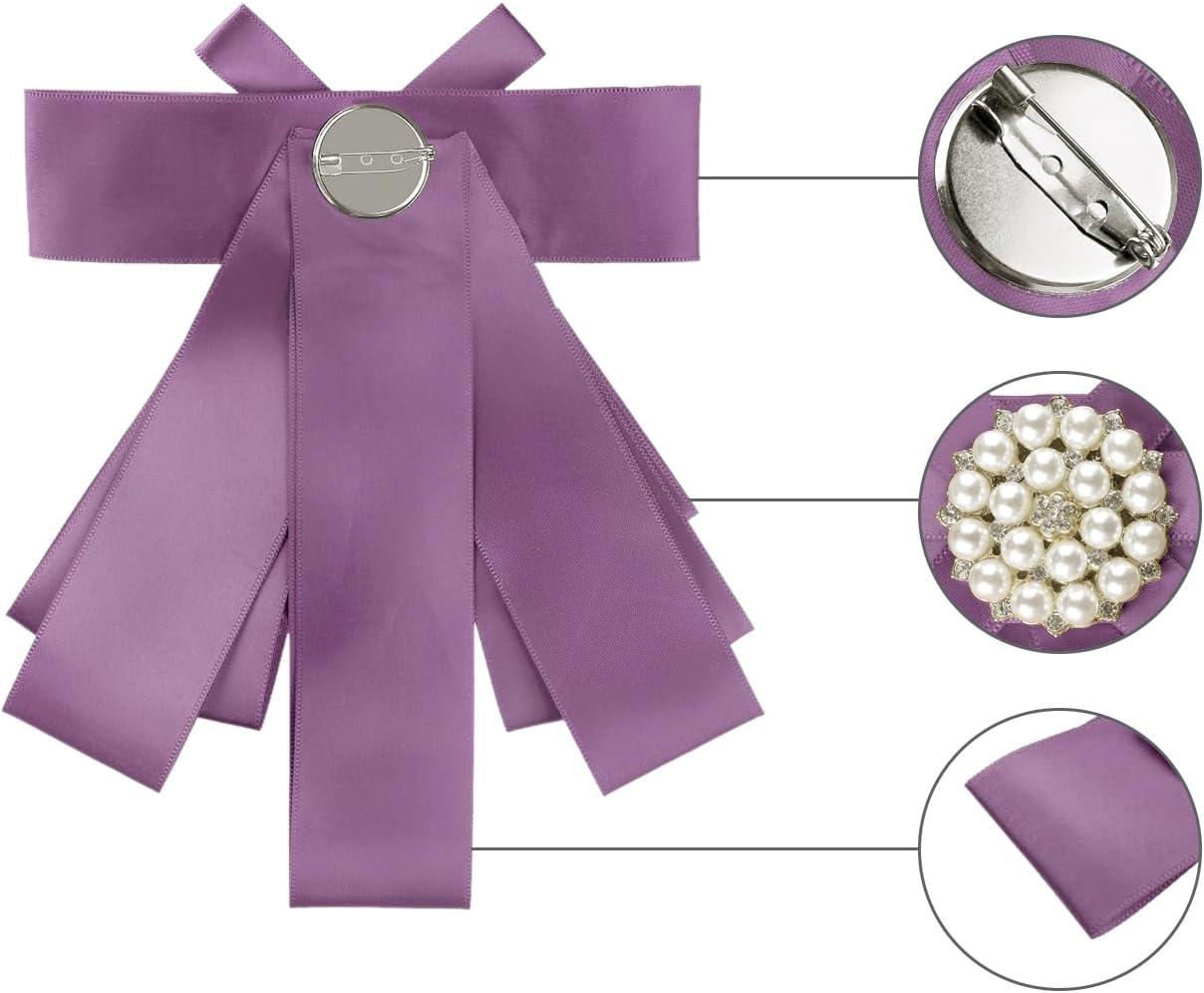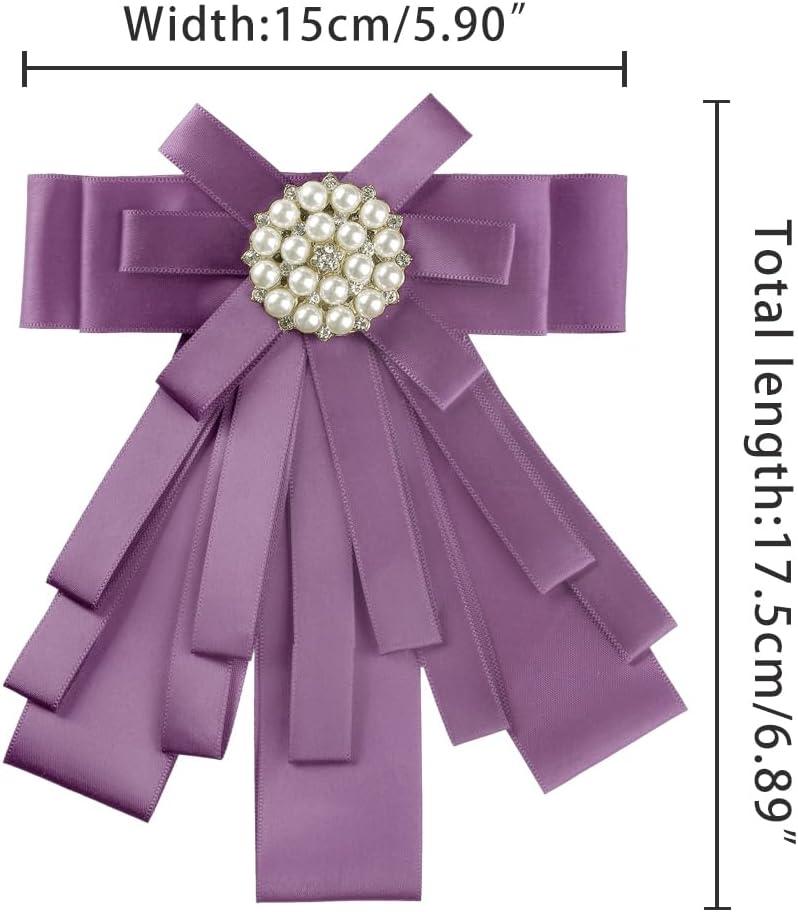 Allegra K Women’s Pre-tied Bowknot Beads Bow Tie Elegant Large Ribbon Brooch(Purple)
