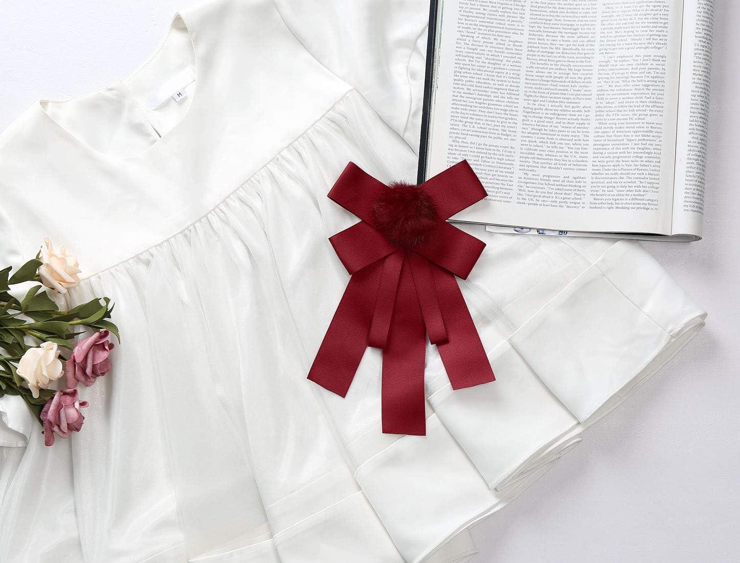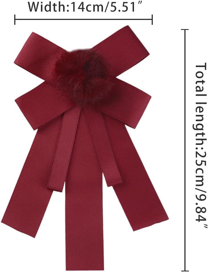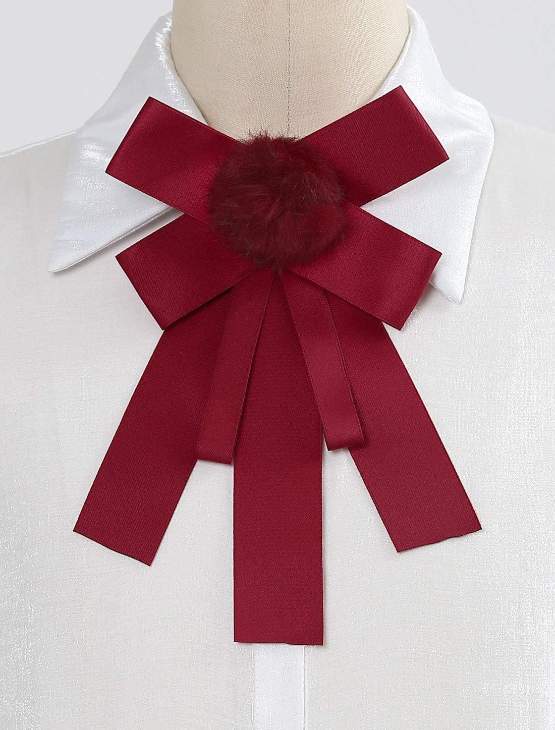 Allegra K Women’s Pre-tied Bowknot Pin Solid Color Neckties Elegant Faux Fur Ball Bow Tie(Dark Red)