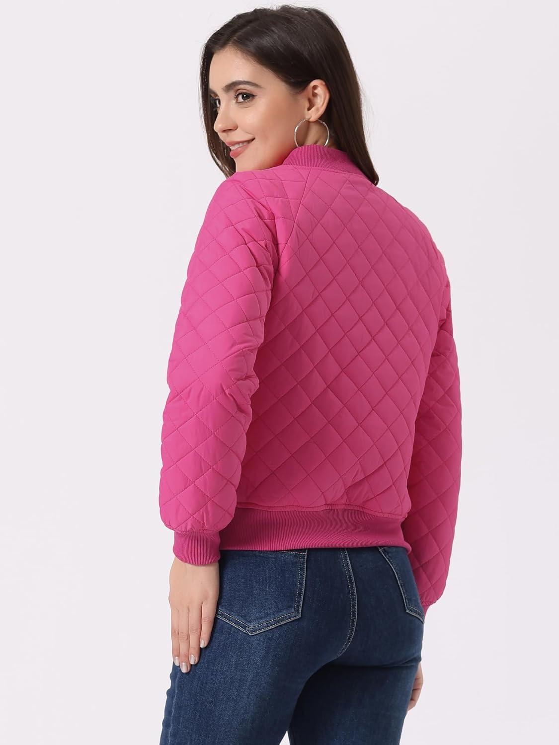 Allegra K Women's Quilted Zip Up Raglan Long Sleeve Bomber Jacket(Hot Pink)
