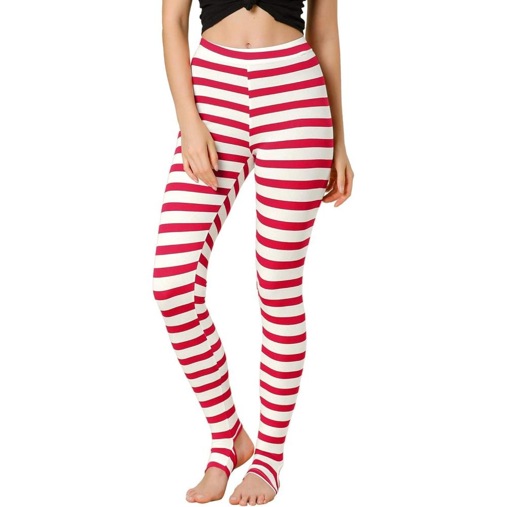 imageAllegra K Womens Rainbow Leggings Printed High Waist Elastic Waistband Party Yoga Stirrup PantsRed Whitestripe