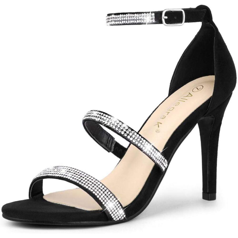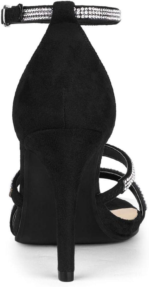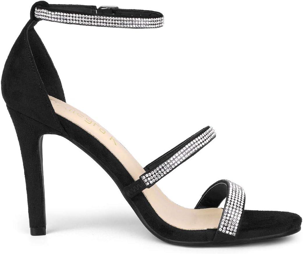 Allegra K Women’s Rhinestone Ankle Strap Stiletto High Heels Sandals(Black)