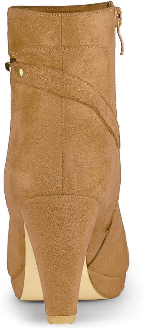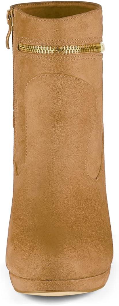 Allegra K Women's Round Toe Ankle Mid Heel Boots(Brown)