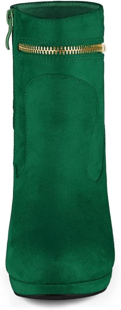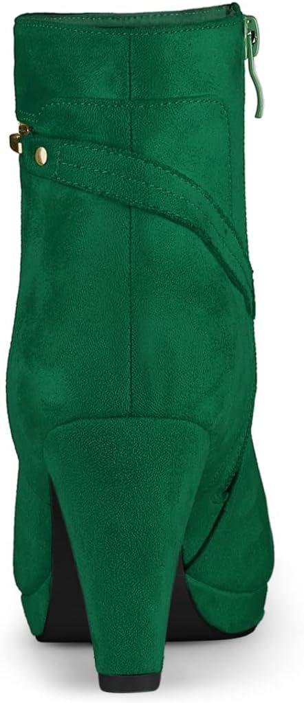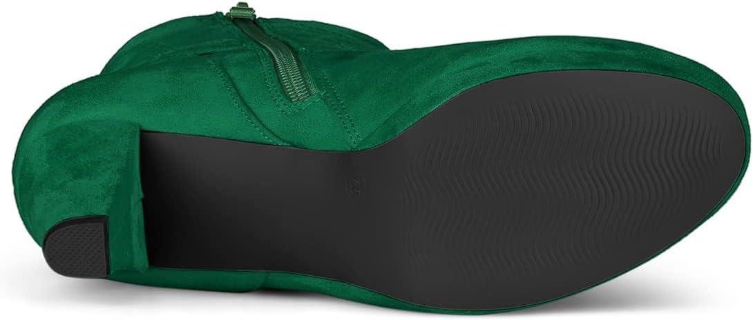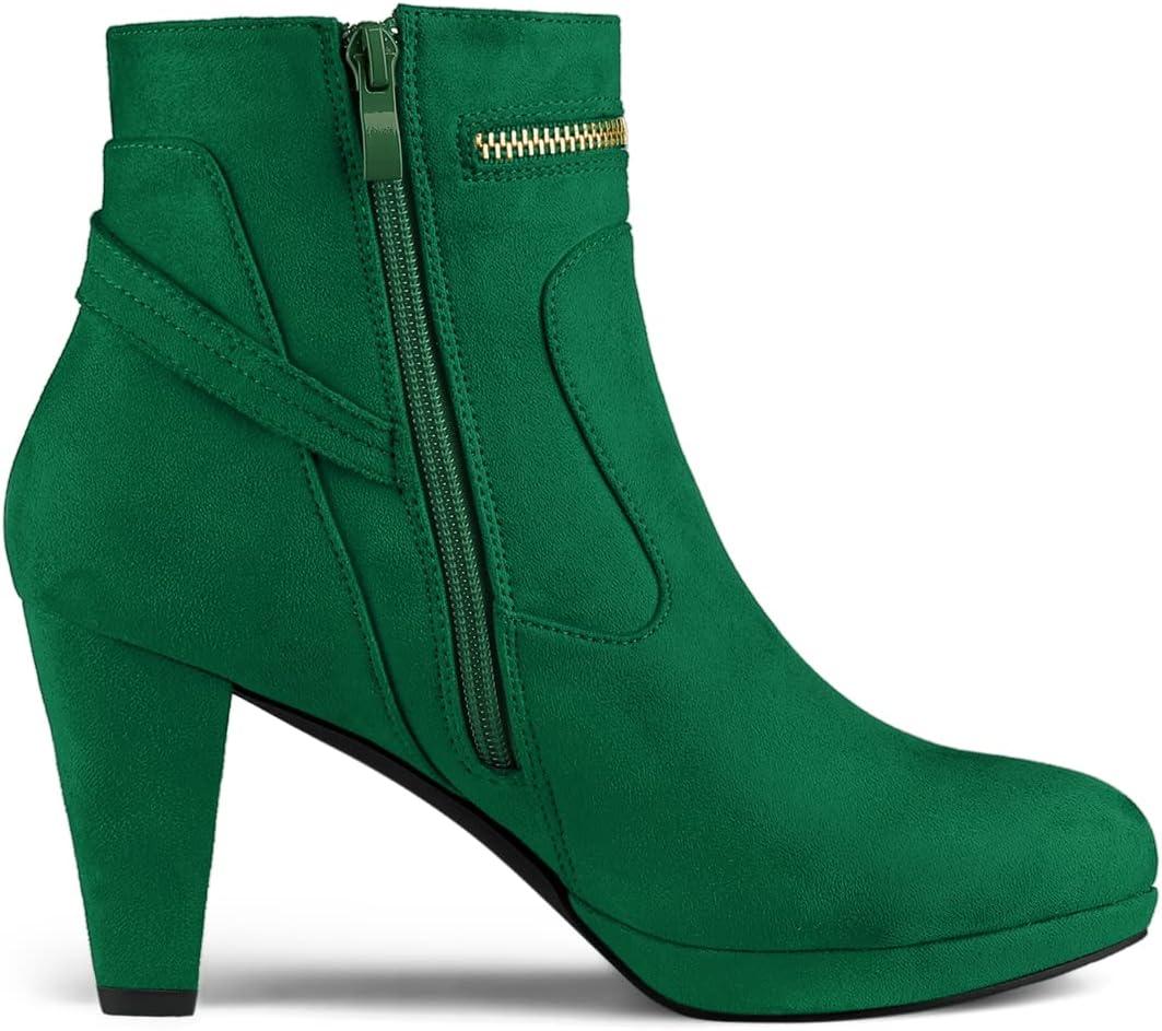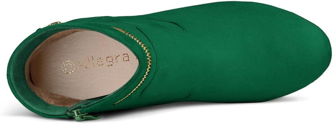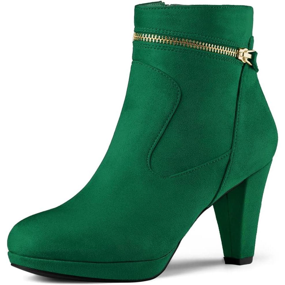 Allegra K Women’s Round Toe Ankle Mid Heel Boots(Emerald Green)