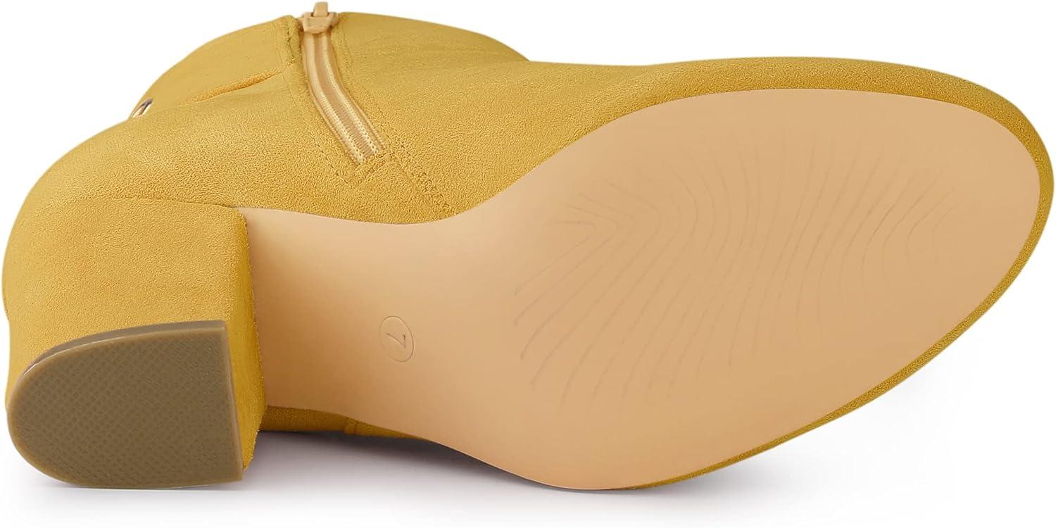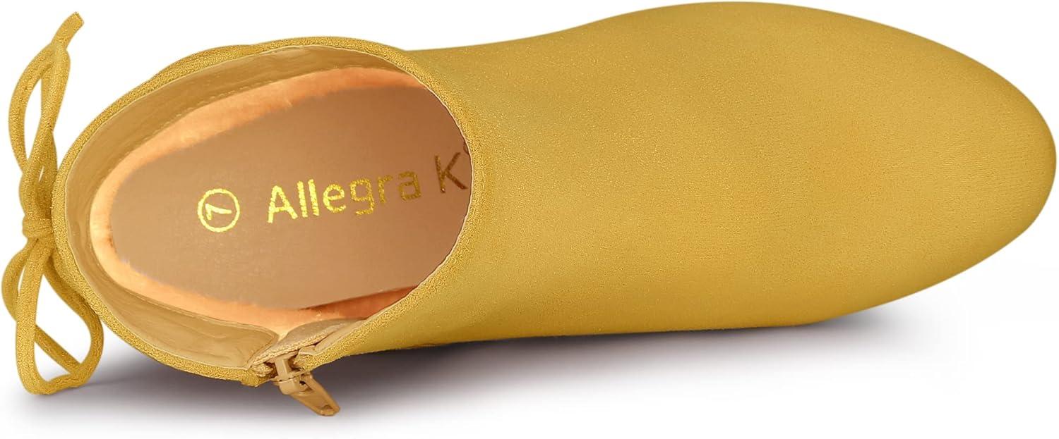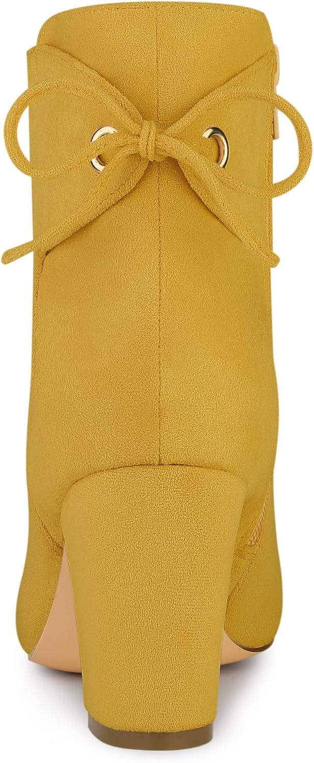 Allegra K Women's Round Toe Block Heel Zipper Lace Up Ankle Boots(Yellow)