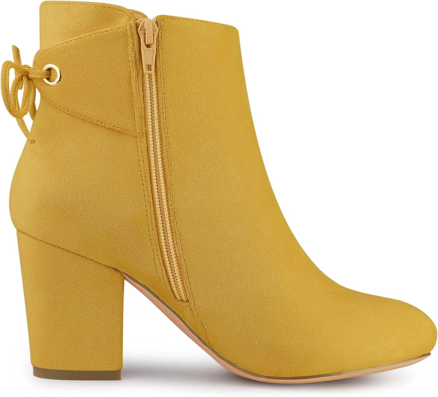 Allegra K Women’s Round Toe Block Heel Zipper Lace Up Ankle Boots(Yellow)