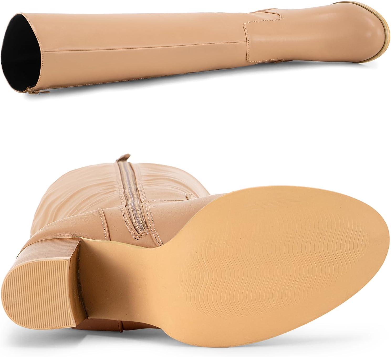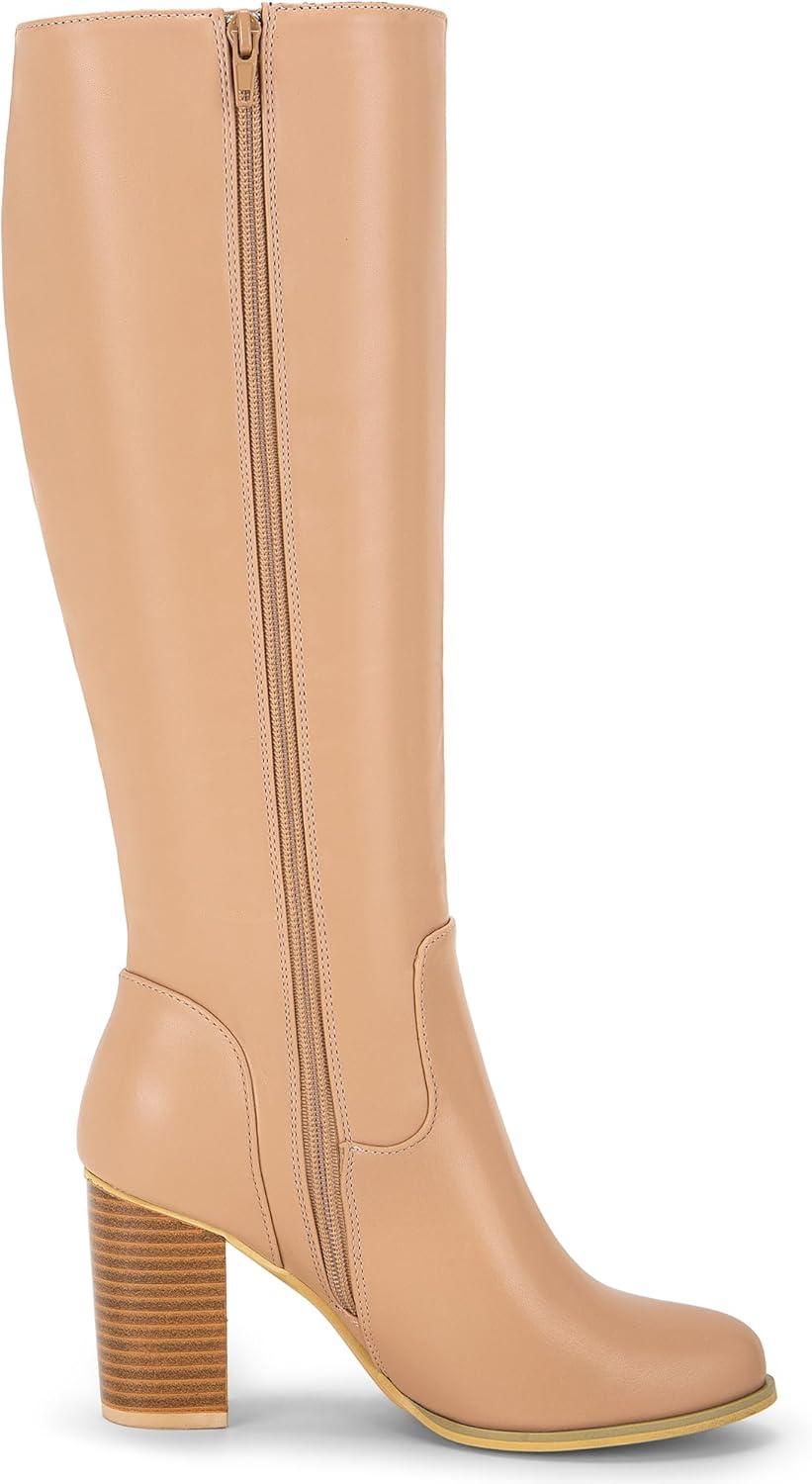 Allegra K Women’s Round Toe Block Heeled Knee High Boots(Nude)