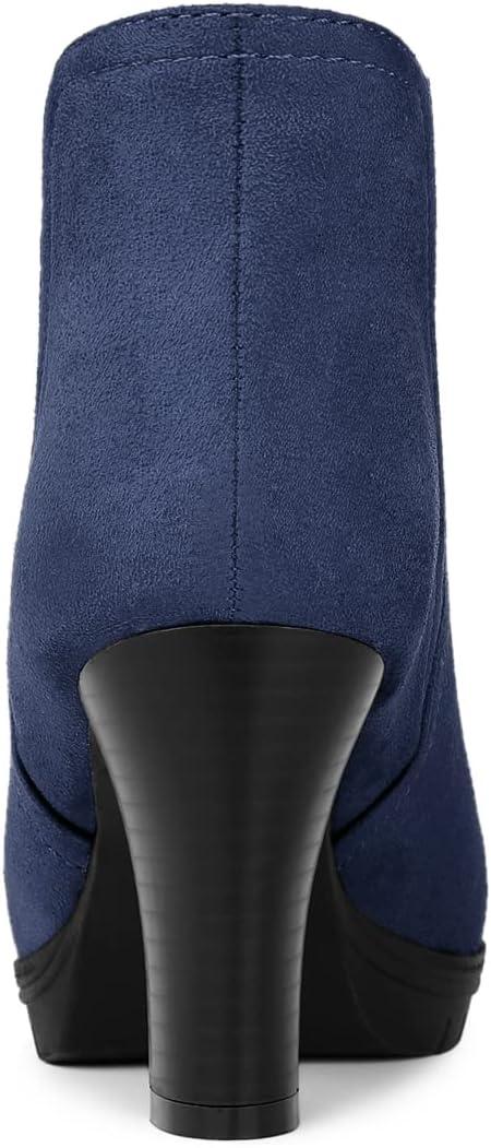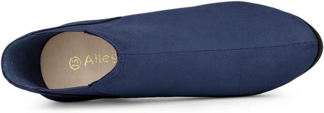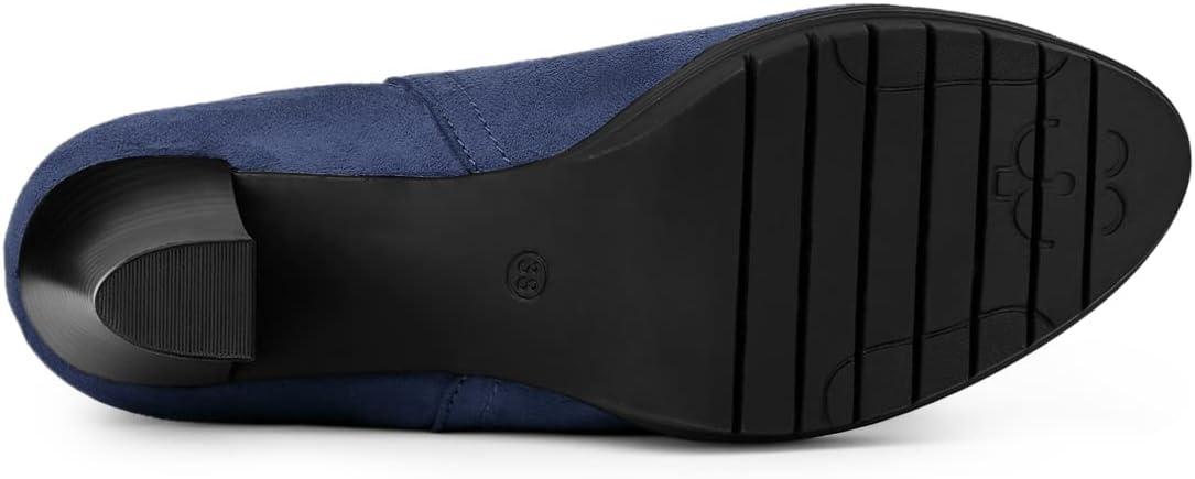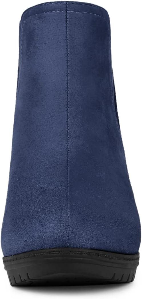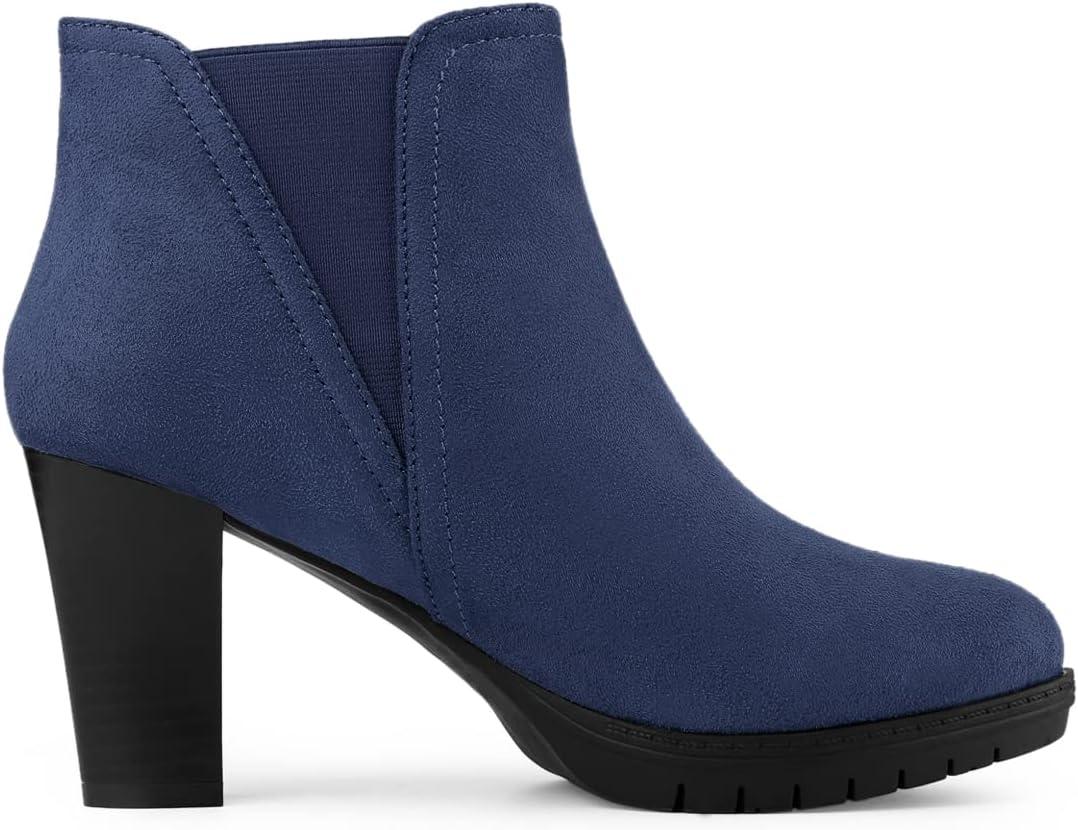 Allegra K Women's Round Toe Block Heels Chelsea Ankle Boots(Dark Blue)