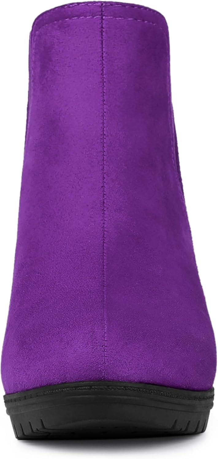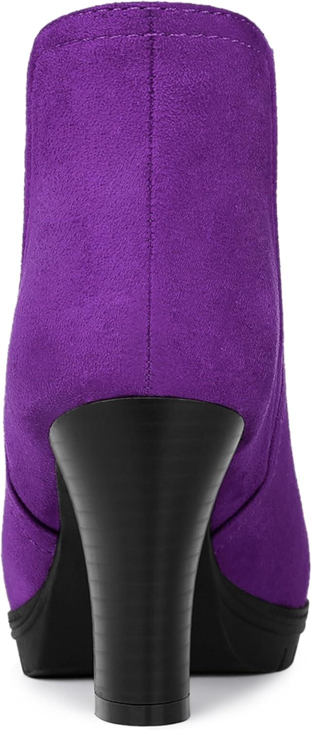 Allegra K Women's Round Toe Block Heels Chelsea Ankle Boots(Purple)