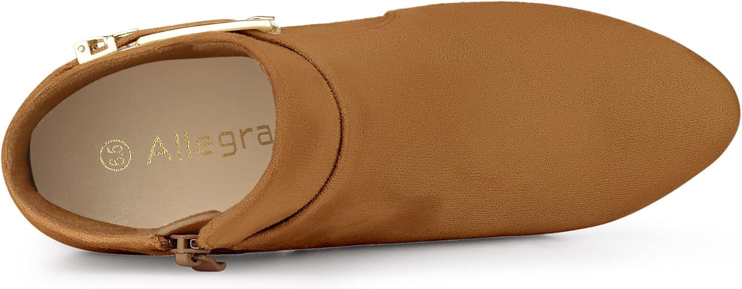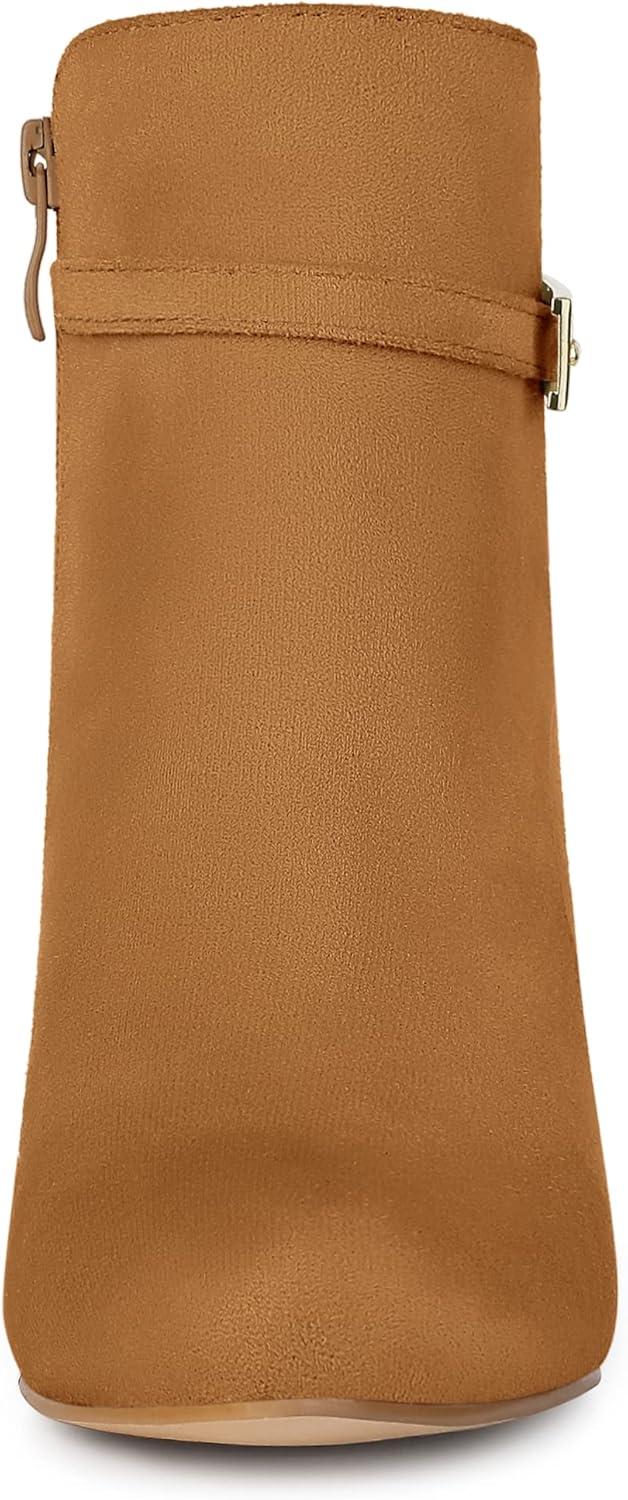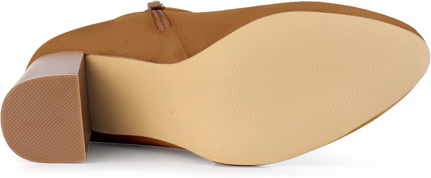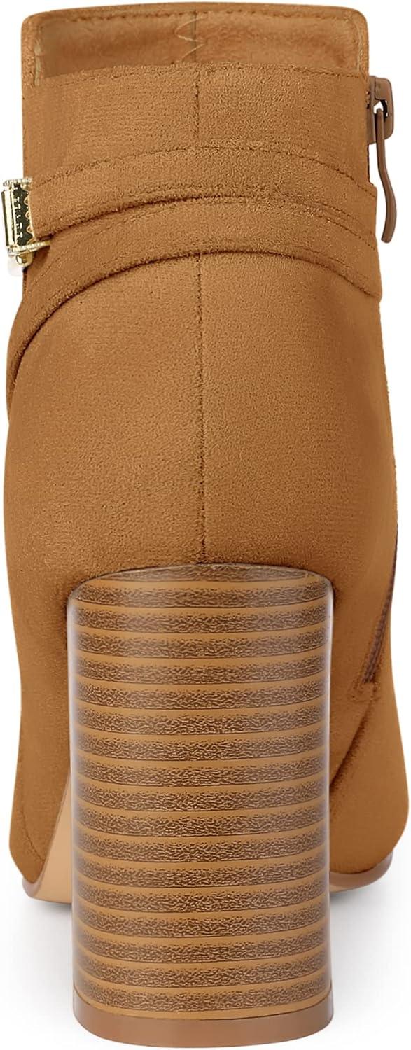 Allegra K Women’s Round Toe Buckle Chunky Heels Ankle Boots(Brown)
