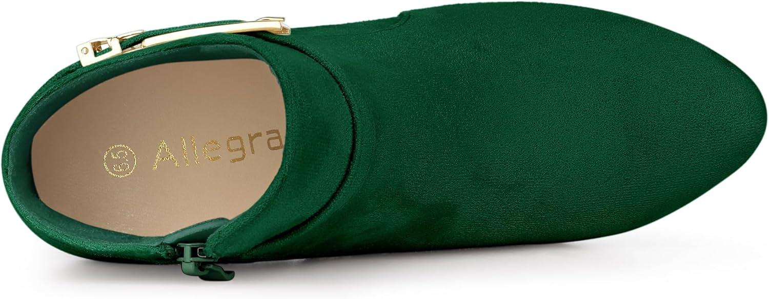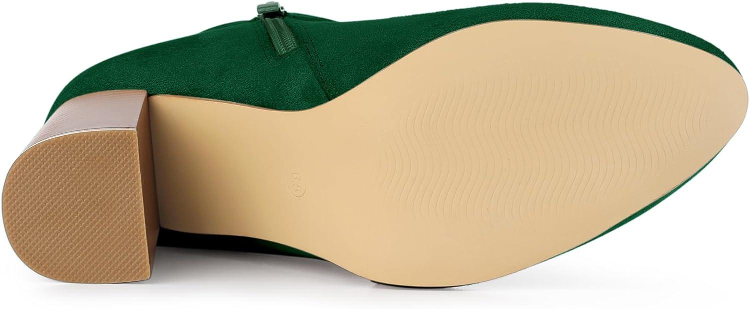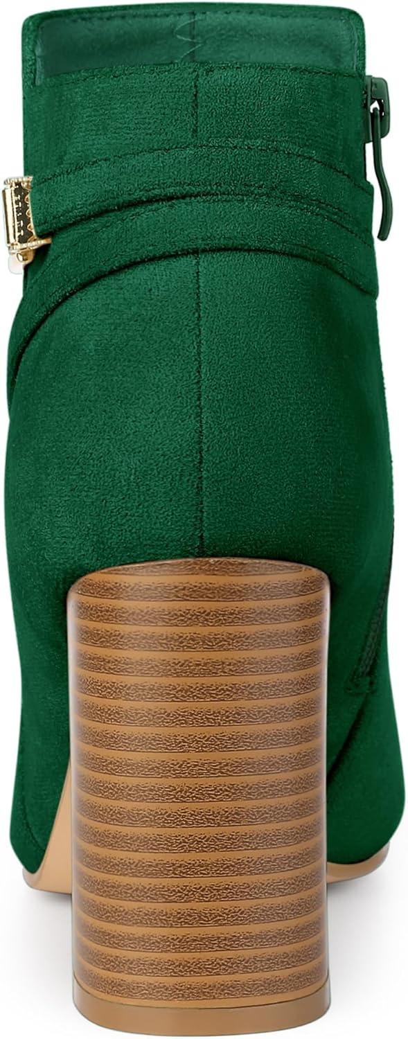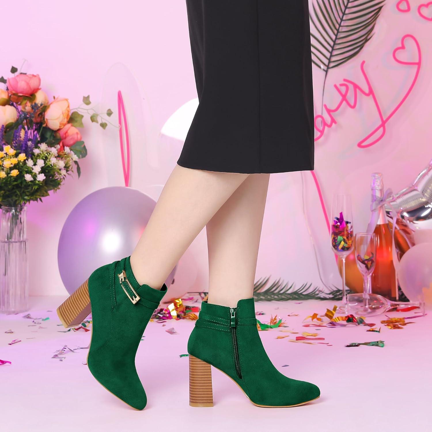 Allegra K Women's Round Toe Buckle Chunky Heels Ankle Boots(Green)