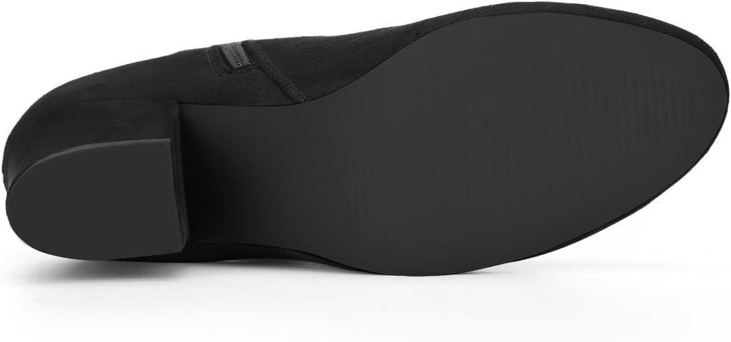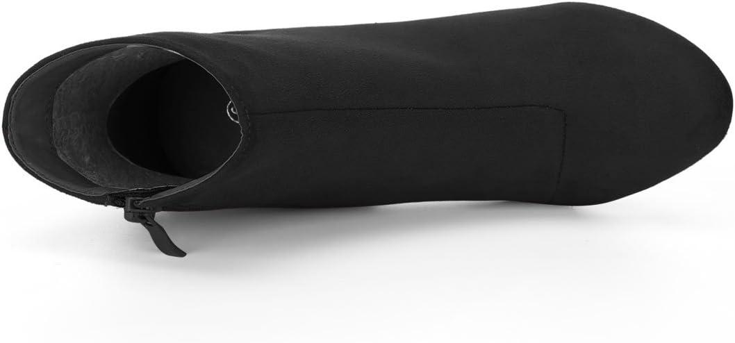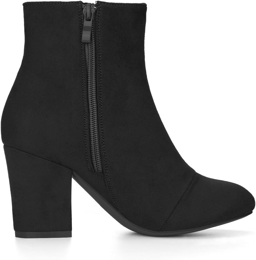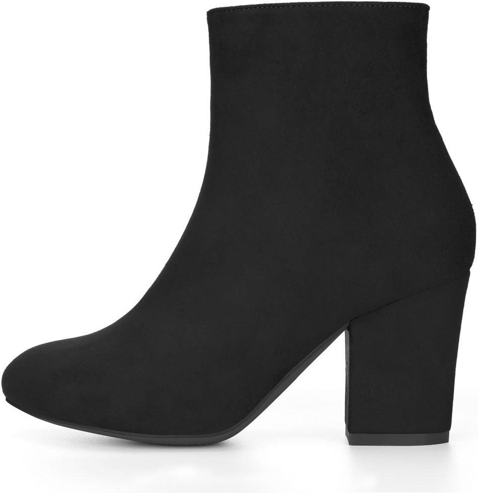Allegra K Women's Round Toe Chunky Heel Ankle Boots(Black)