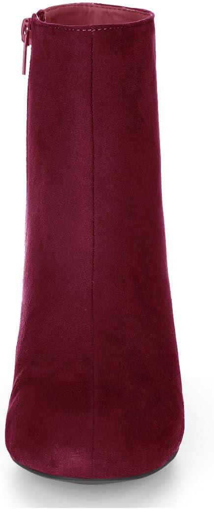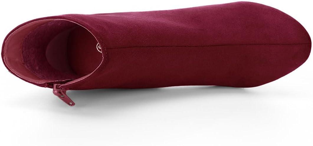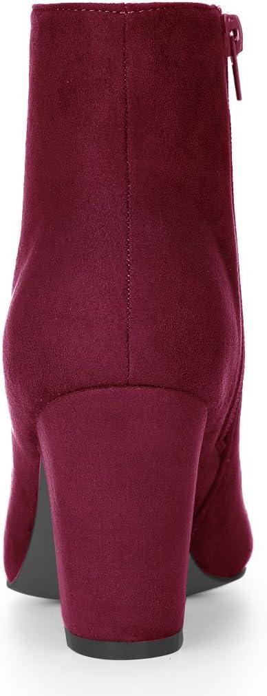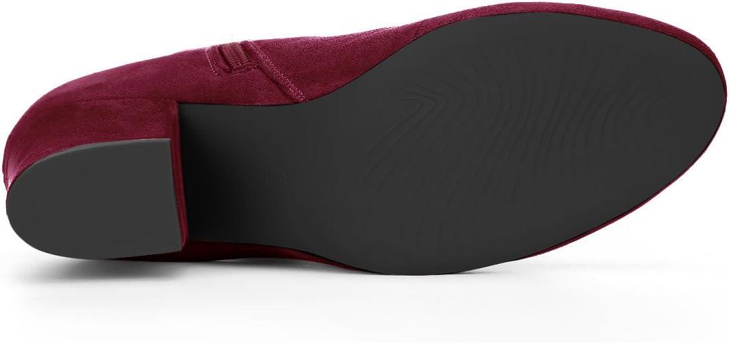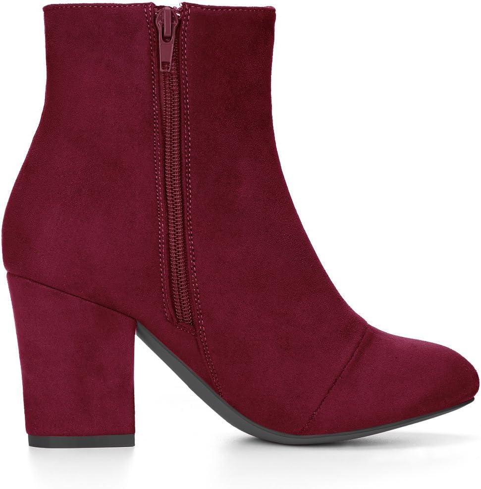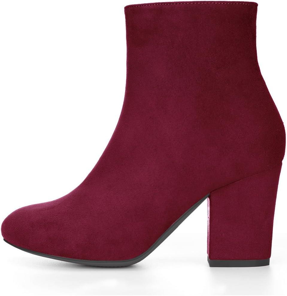 Allegra K Women's Round Toe Chunky Heel Ankle Boots(Burgundy)