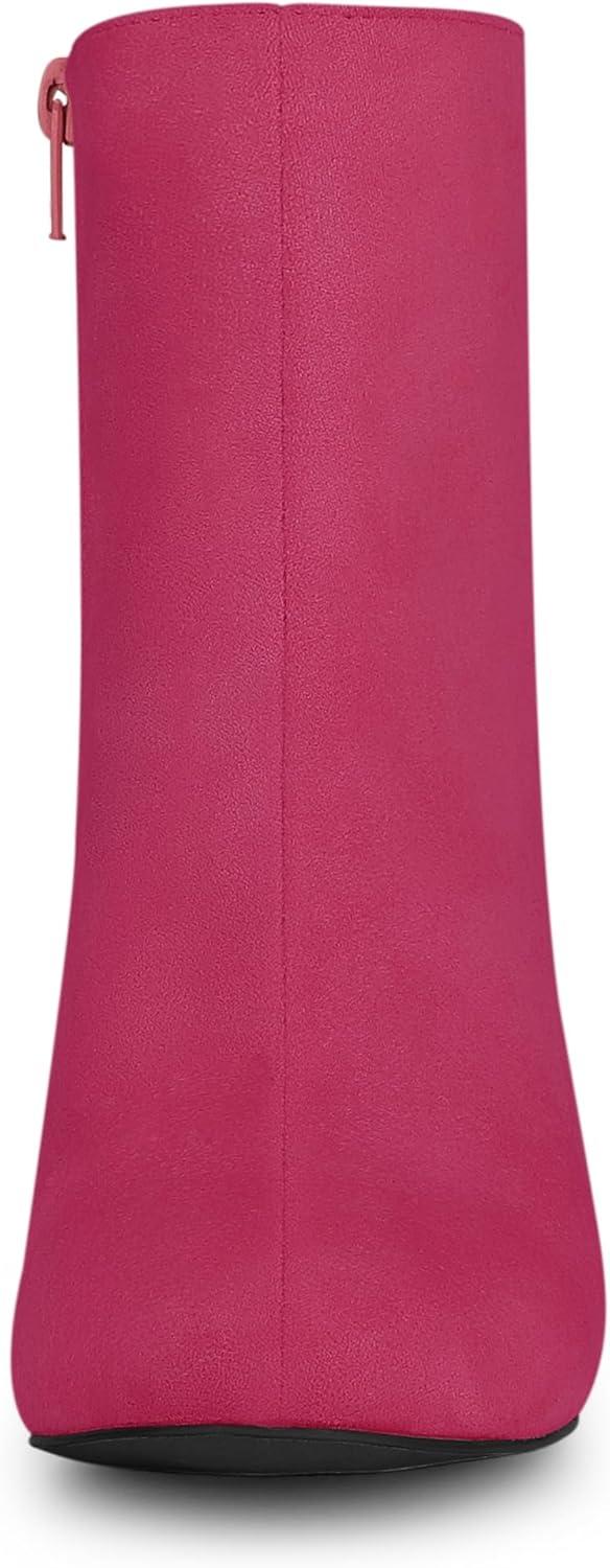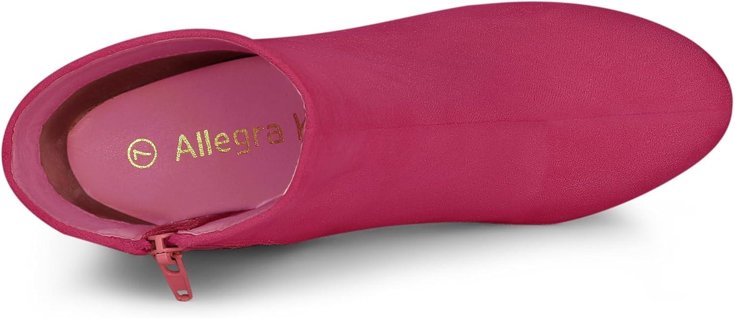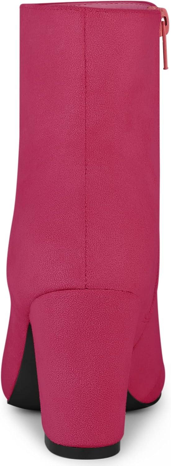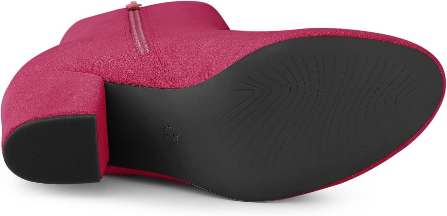 Allegra K Women's Round Toe Chunky Heel Ankle Boots(Hot Pink)