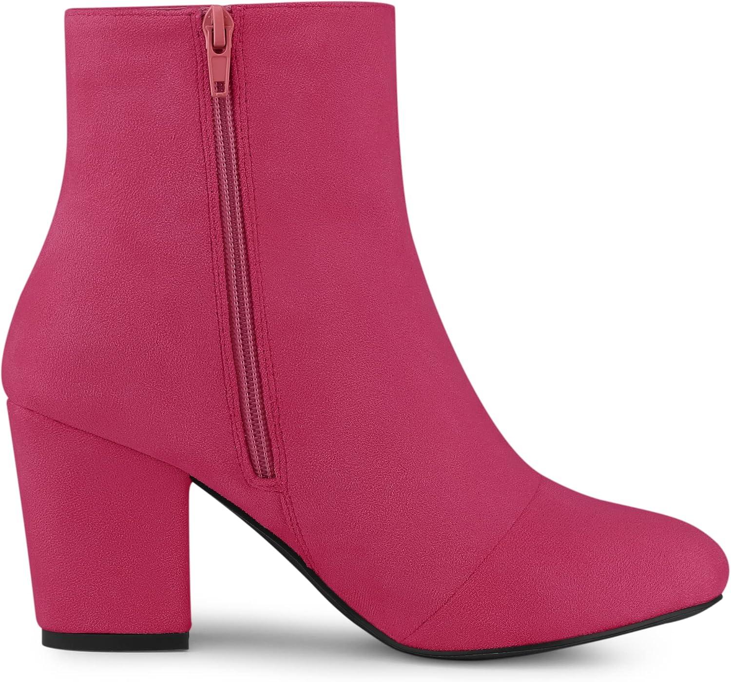 Allegra K Women’s Round Toe Chunky Heel Ankle Boots(Hot Pink)
