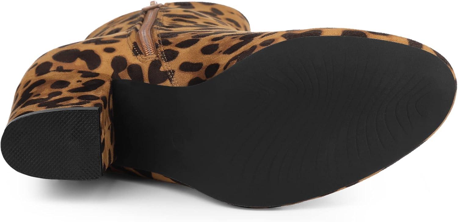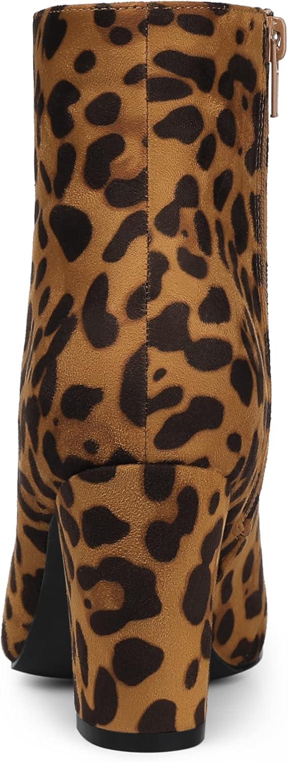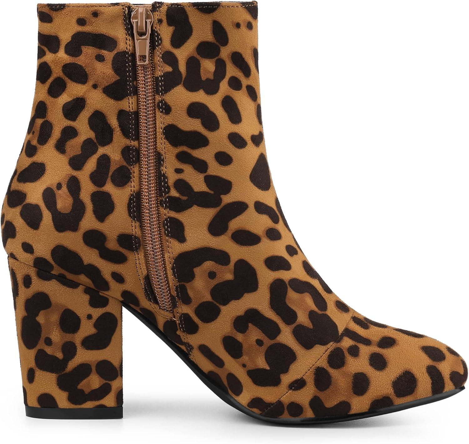 Allegra K Women's Round Toe Chunky Heel Ankle Boots(Leopard)