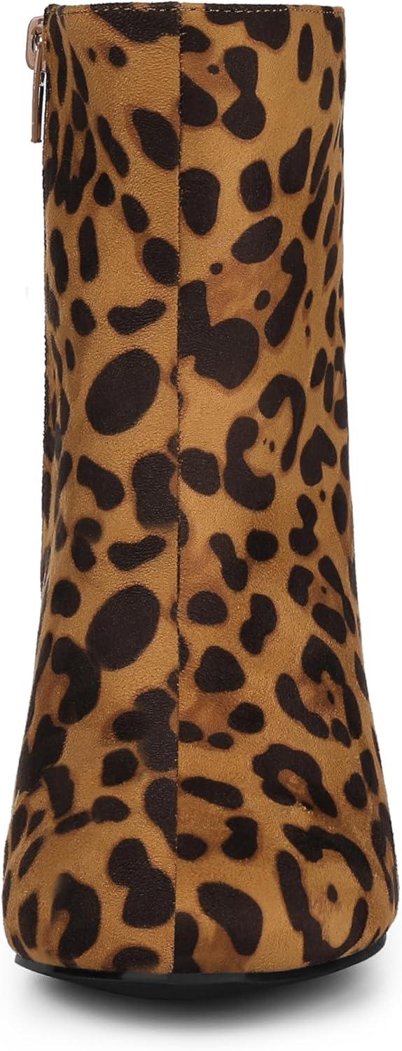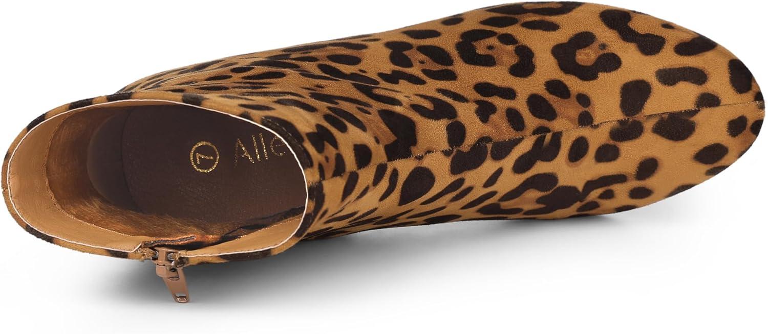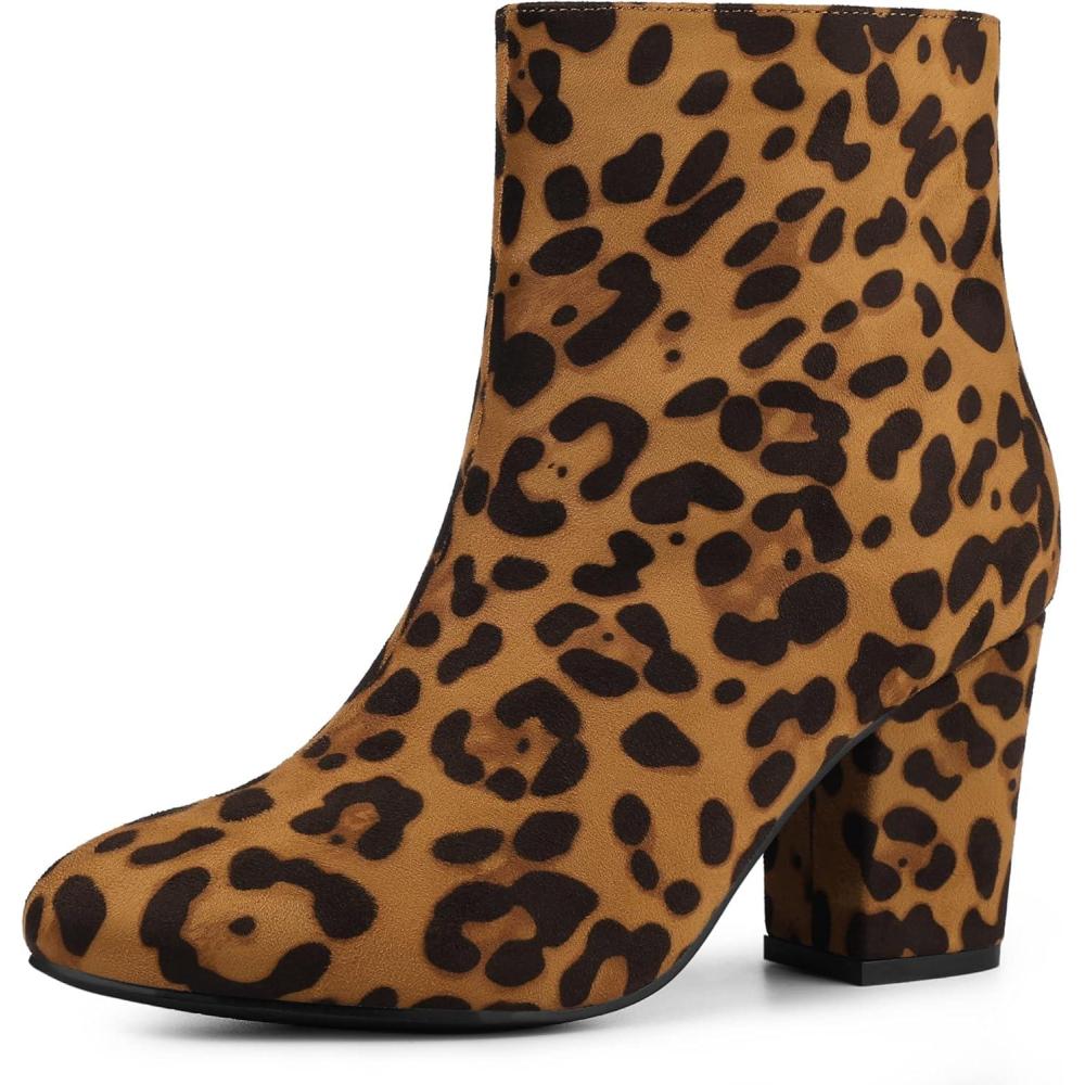 Allegra K Women’s Round Toe Chunky Heel Ankle Boots(Leopard)