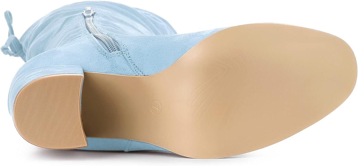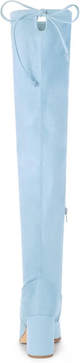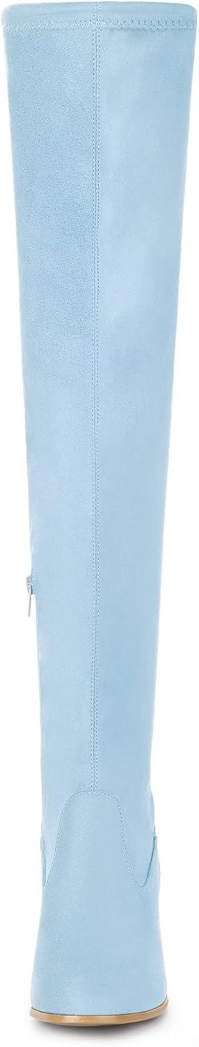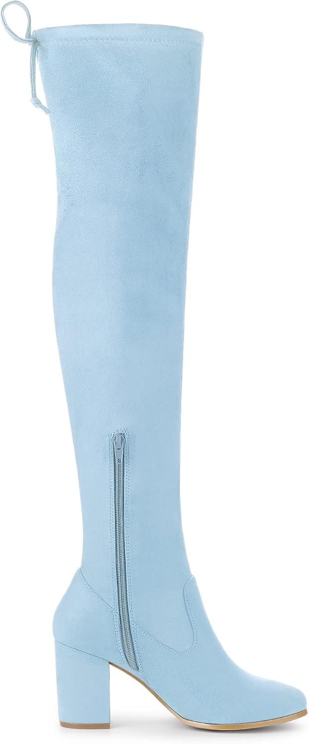 Allegra K Women's Round Toe Chunky Heel Over the Knee High Boots(Sky Blue)