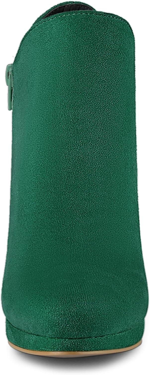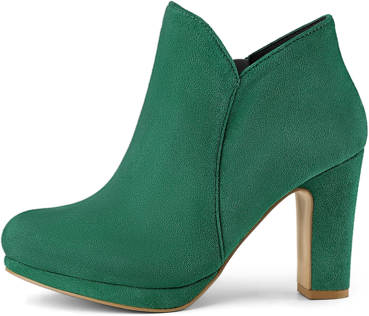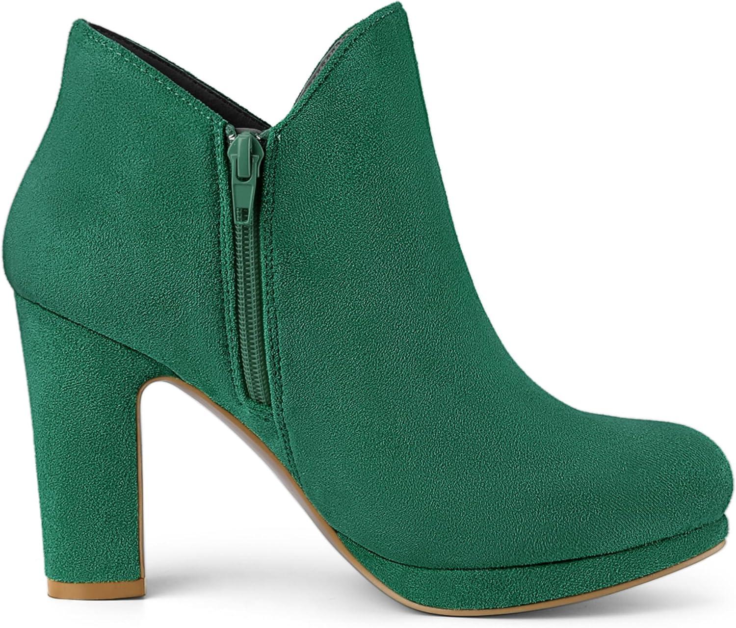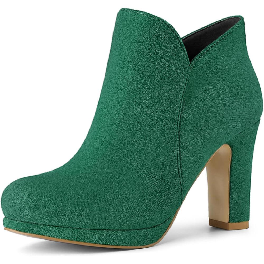 Allegra K Women’s Round Toe Chunky Heeled Ankle Heel Boots(Emerald Green)