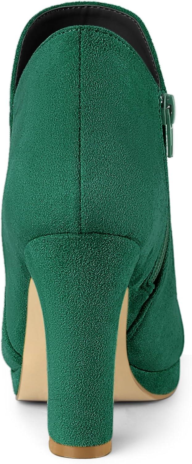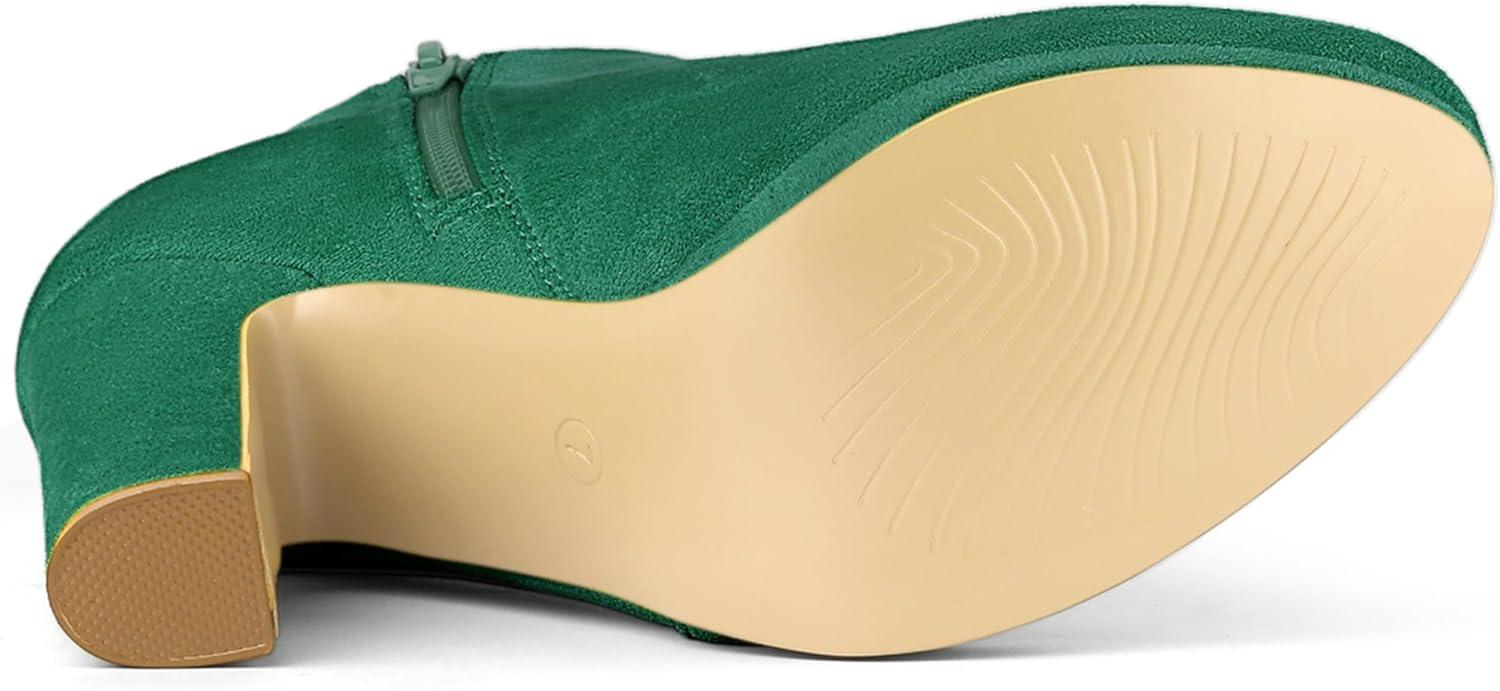Allegra K Women's Round Toe Chunky Heeled Ankle Heel Boots(Emerald Green)