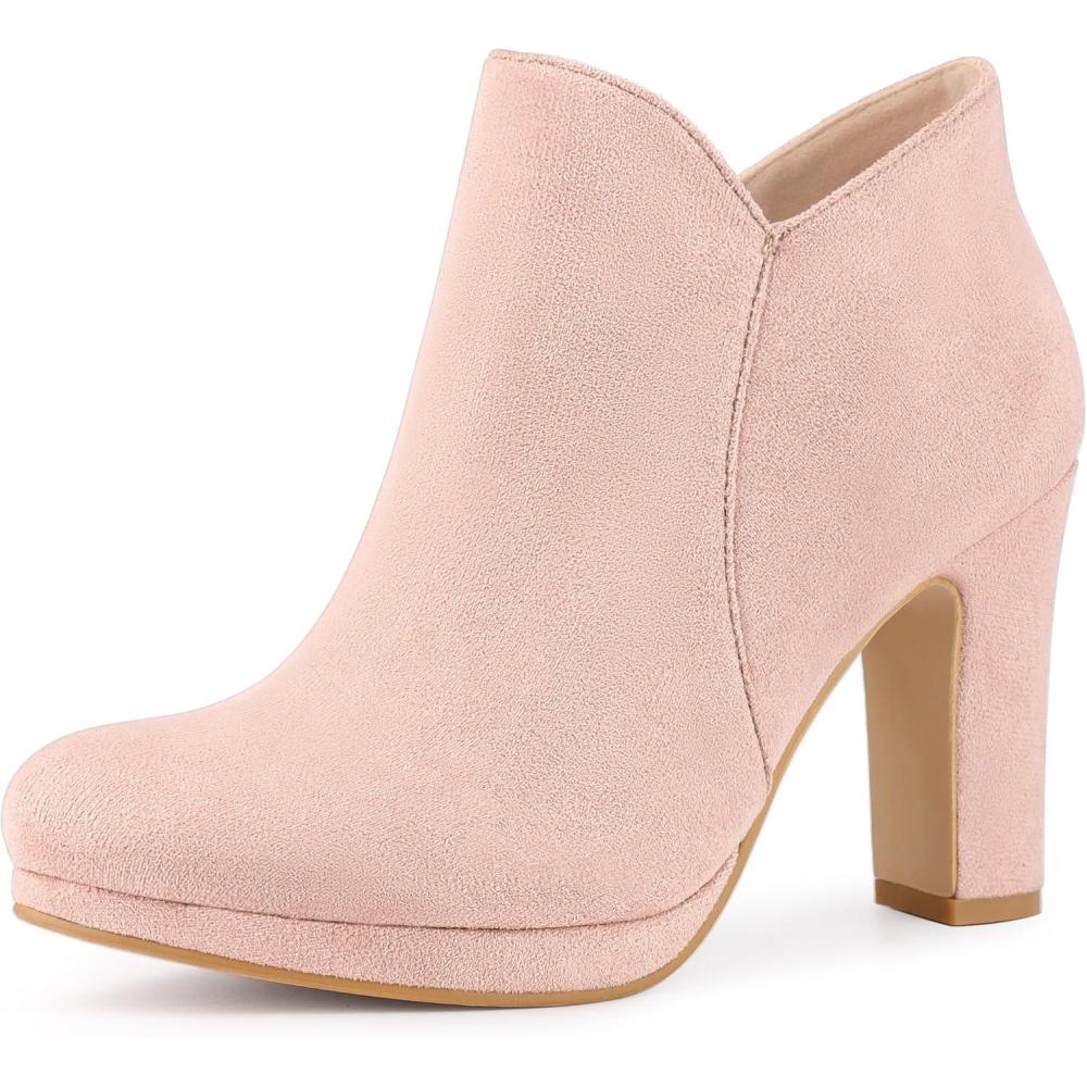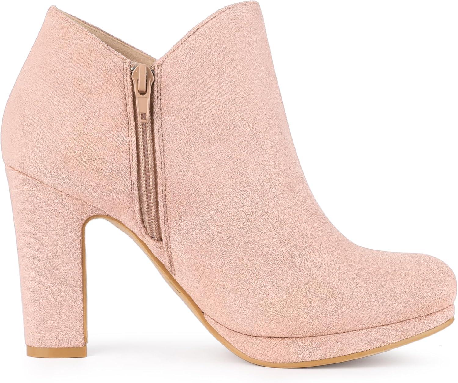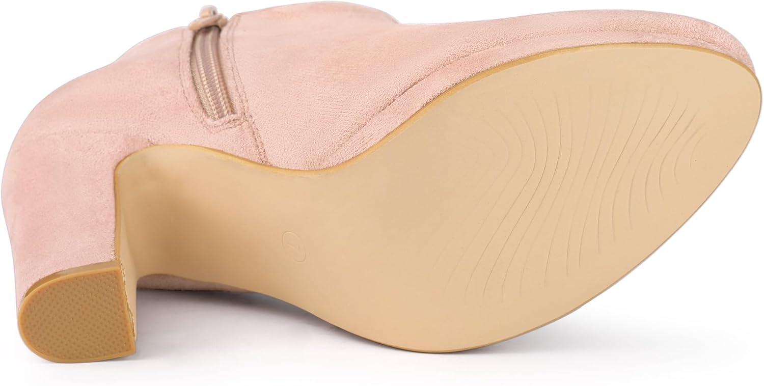 Allegra K Women's Round Toe Chunky Heeled Ankle Heel Boots(Pink)