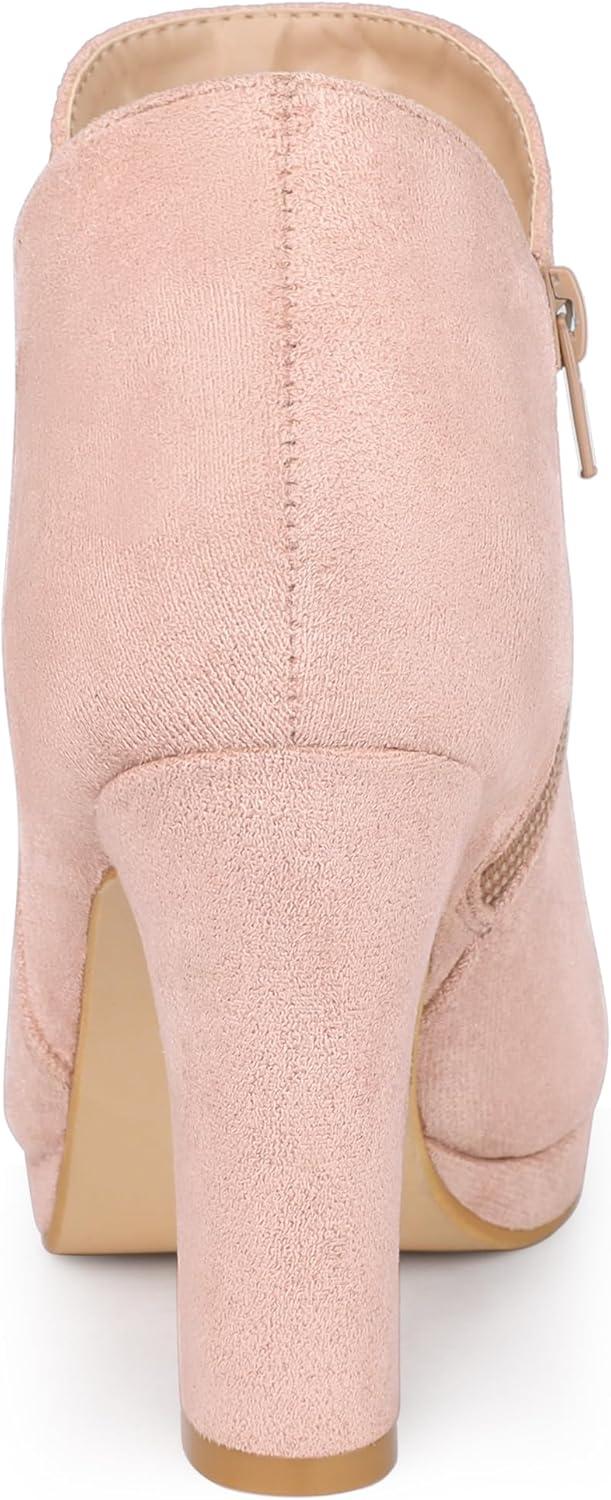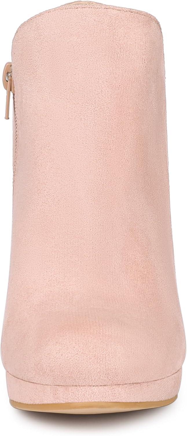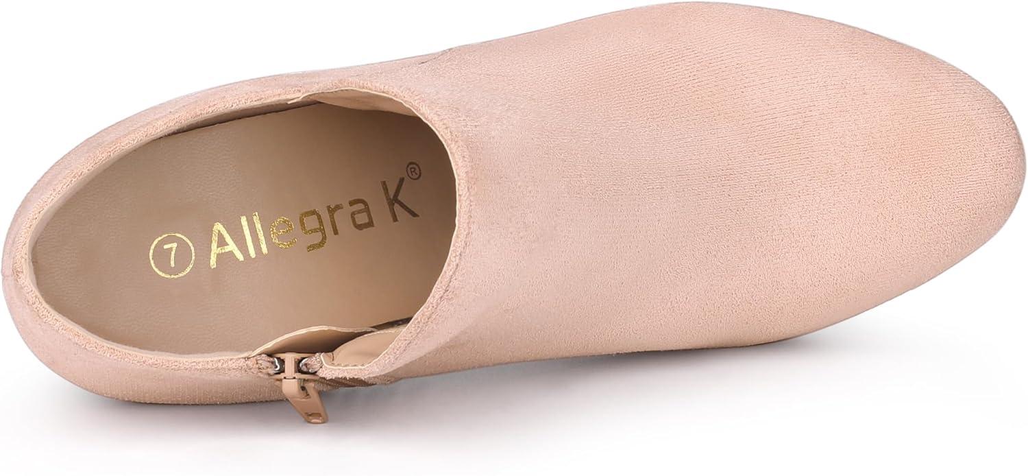 Allegra K Women's Round Toe Chunky Heeled Ankle Heel Boots(Pink)