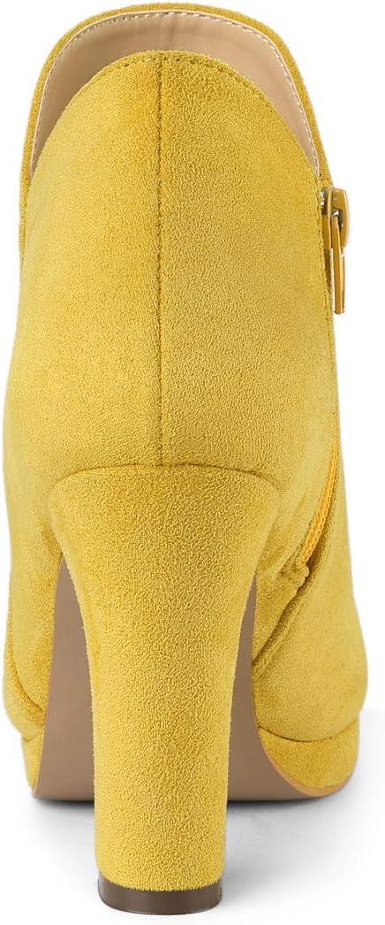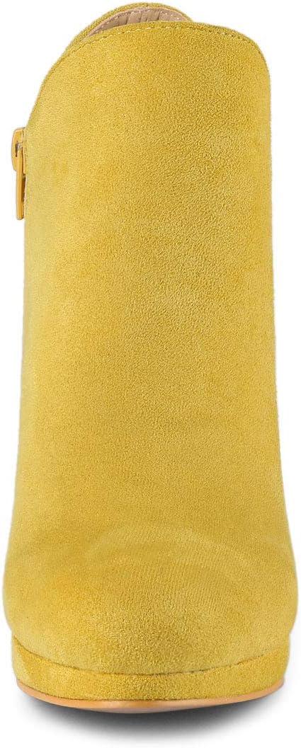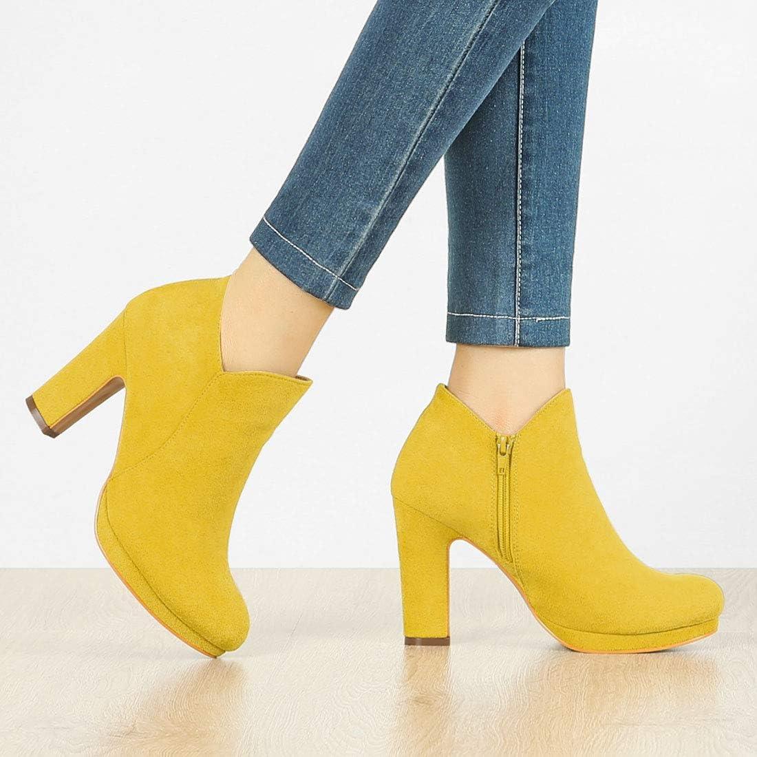 Allegra K Women's Round Toe Chunky Heeled Ankle Heel Boots(Yellow)