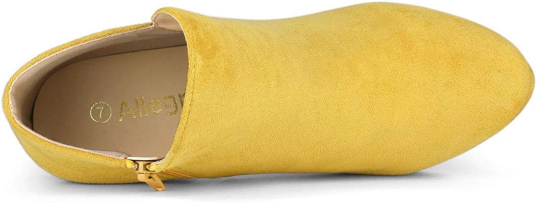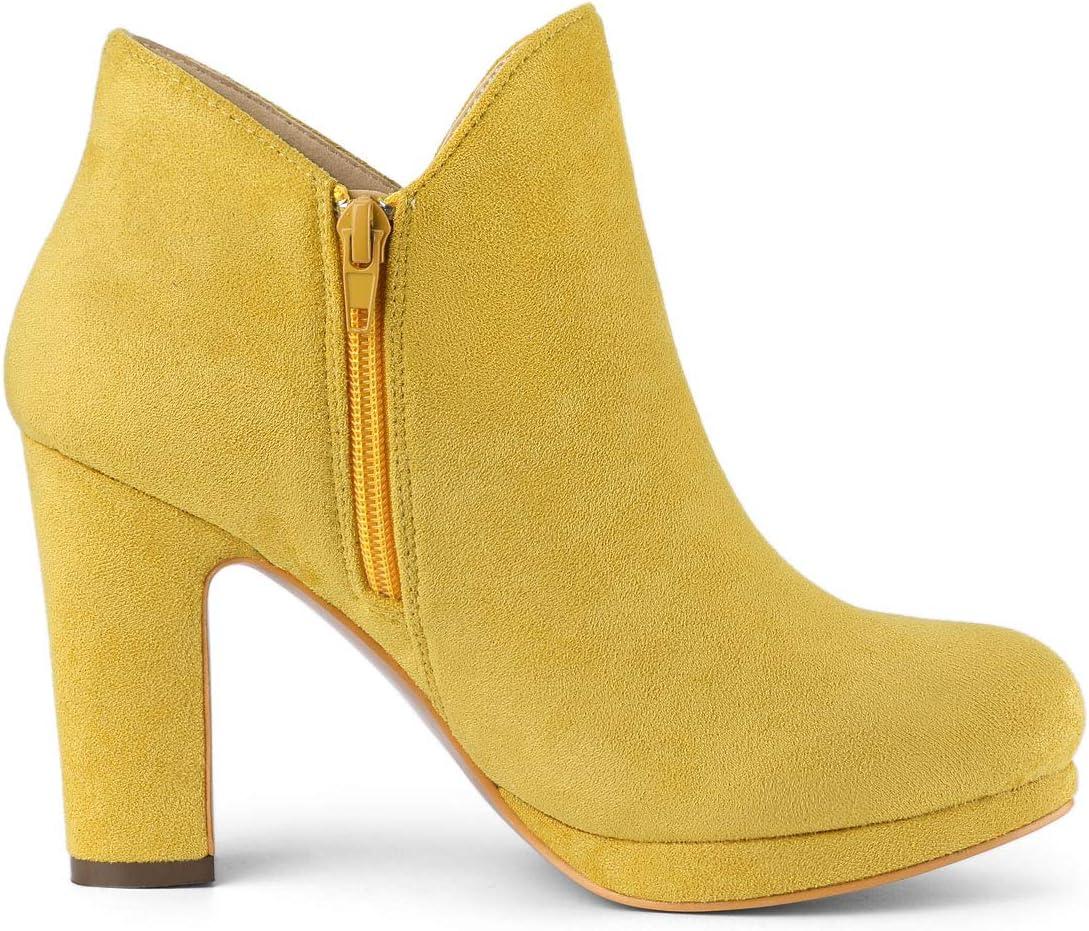 Allegra K Women’s Round Toe Chunky Heeled Ankle Heel Boots(Yellow)