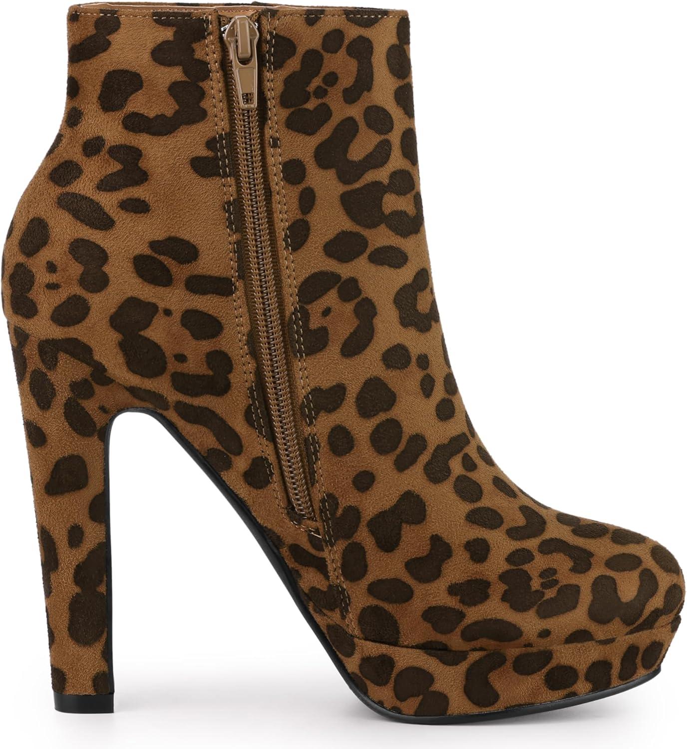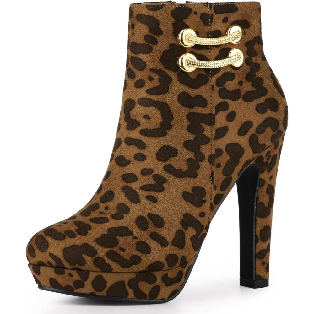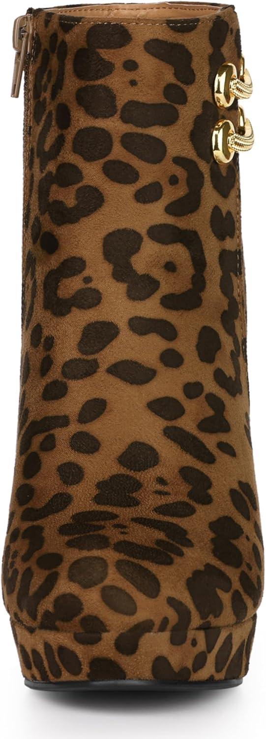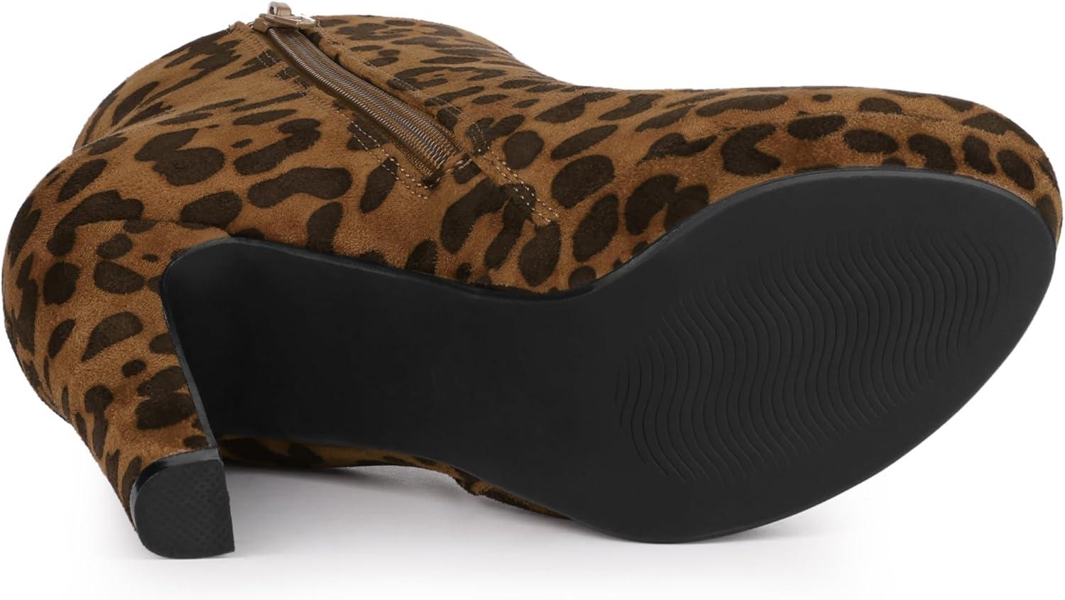 Allegra K Women’s Round Toe Chunky High Heel Platform Ankle Boots(Leopard)