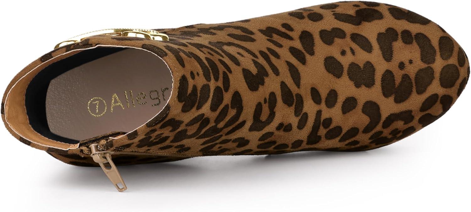 Allegra K Women's Round Toe Chunky High Heel Platform Ankle Boots(Leopard)