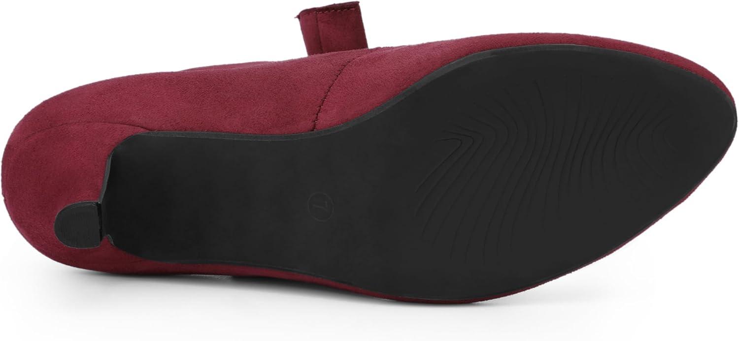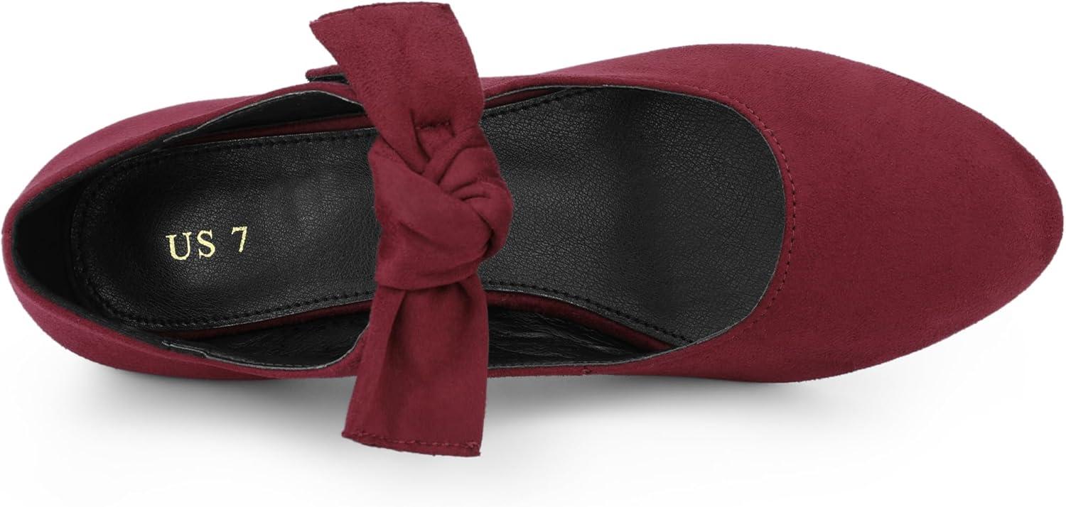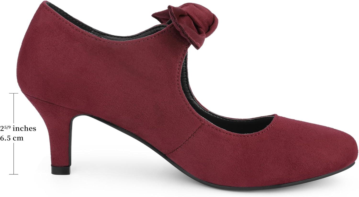 Allegra K Women's Round Toe Knot Hook and Loop Strap Kitten Heel Pumps(Burgundy)