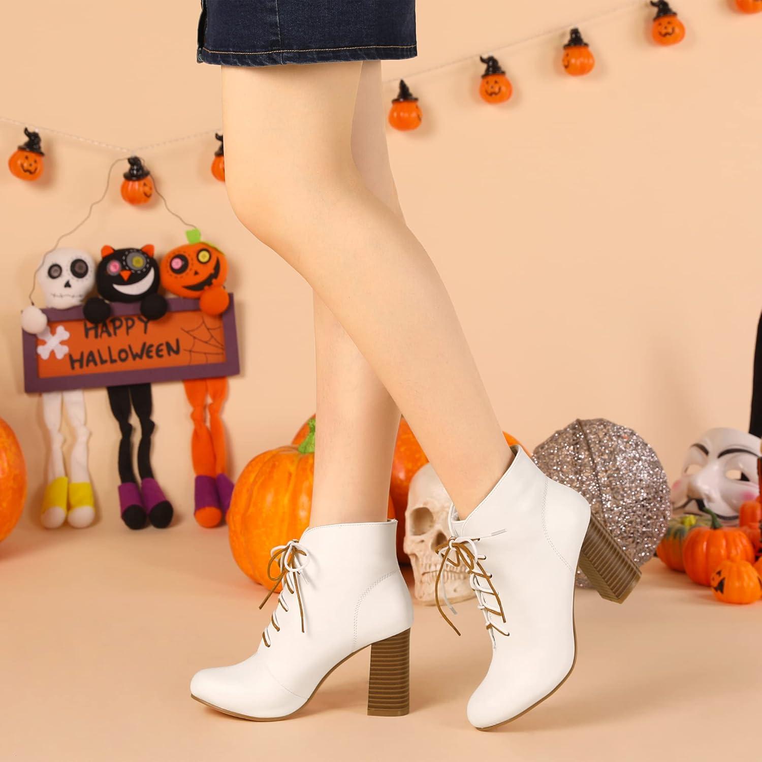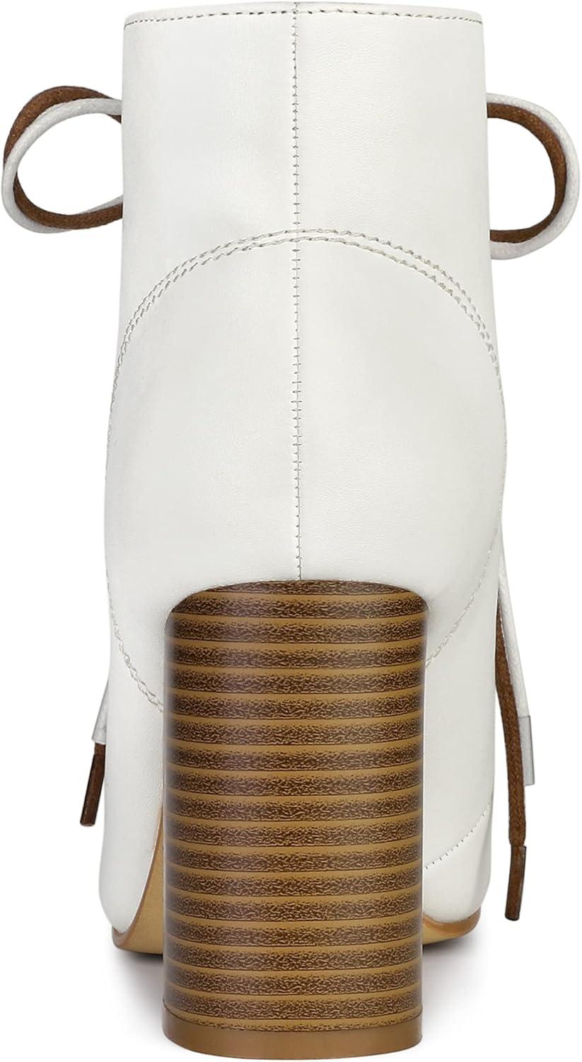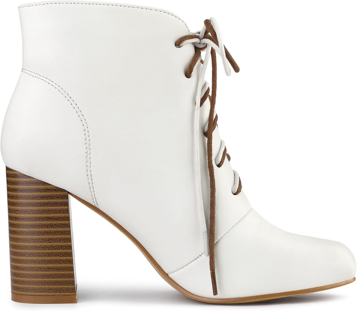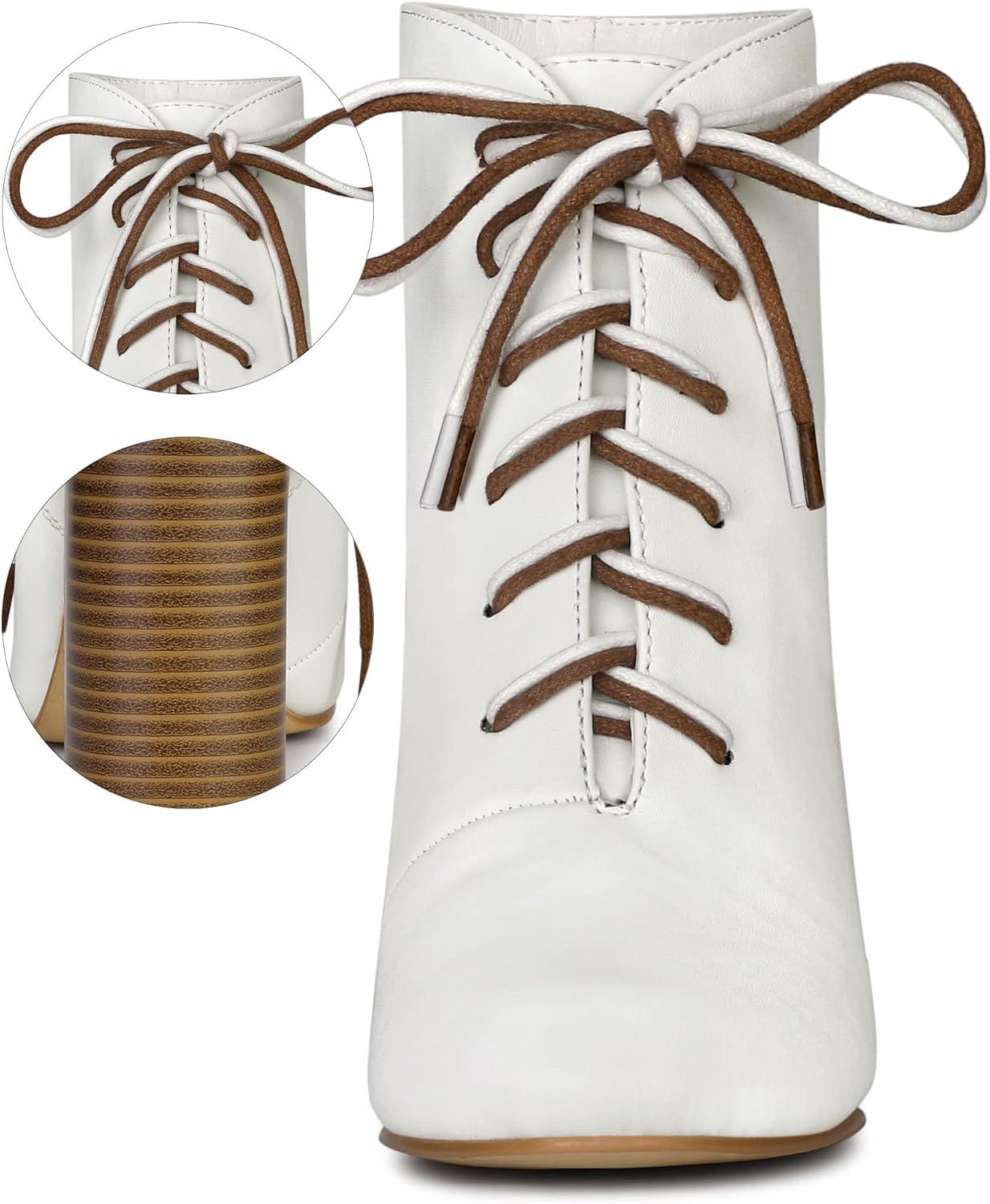 Allegra K Women’s Round Toe Lace Up Chunky Heels Ankle Booties(White)