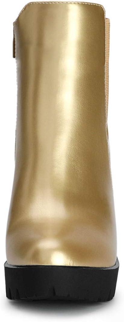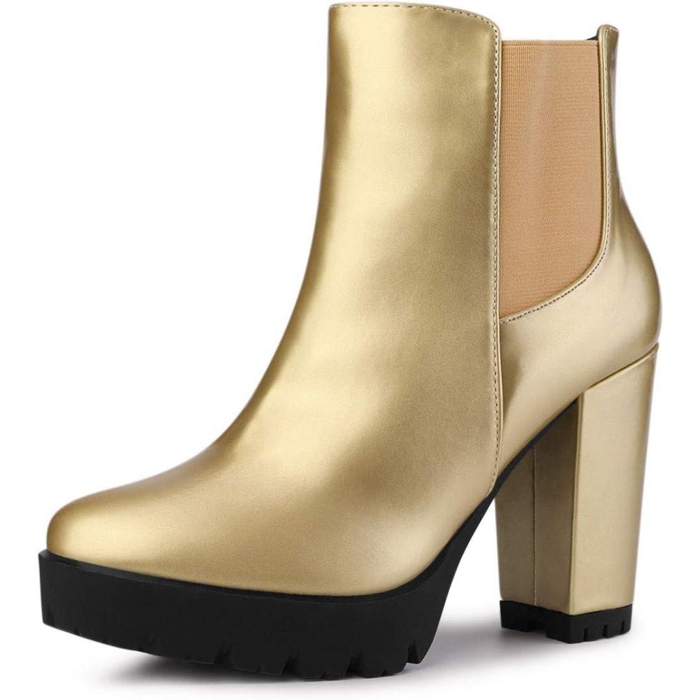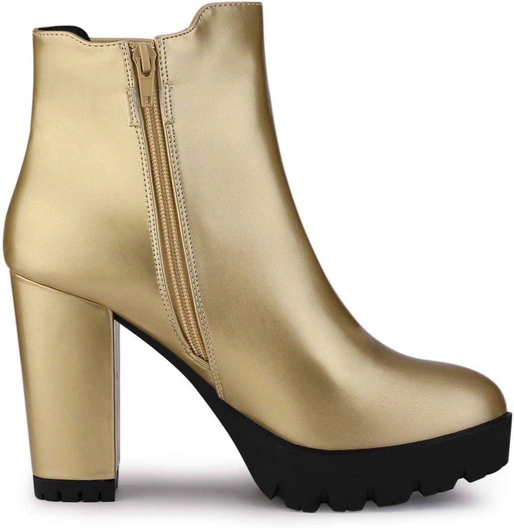 Allegra K Women’s Round Toe Zipper Block Heel Platform Ankle Boots(Gold)