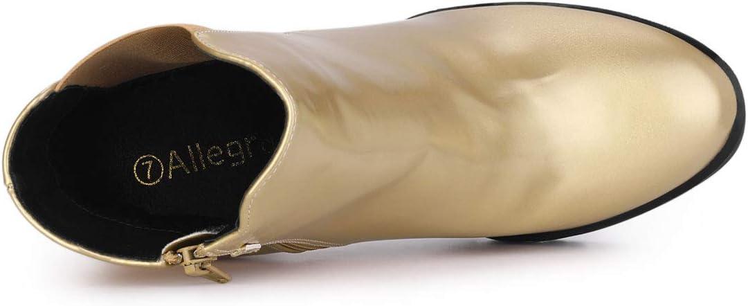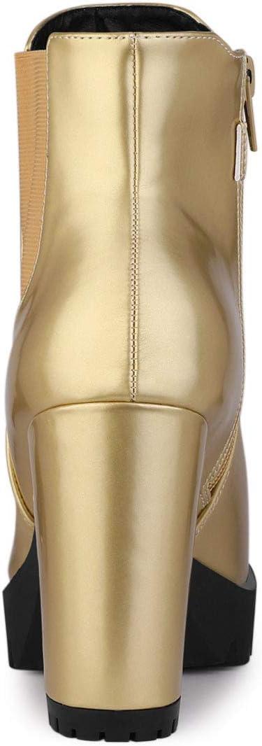 Allegra K Women's Round Toe Zipper Block Heel Platform Ankle Boots(Gold)