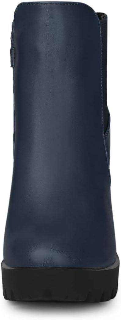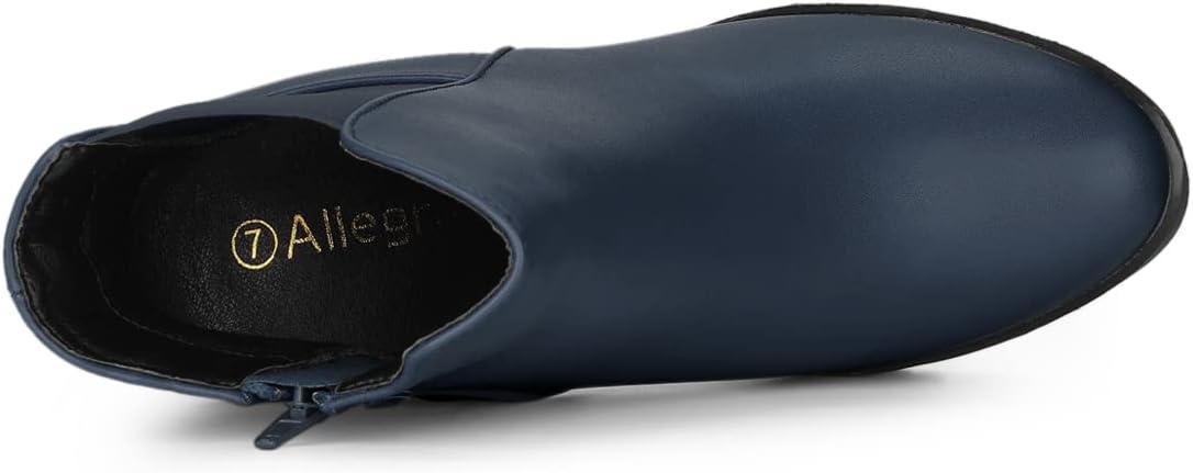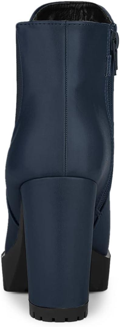Allegra K Women's Round Toe Zipper Block Heel Platform Ankle Boots(Navy Blue)