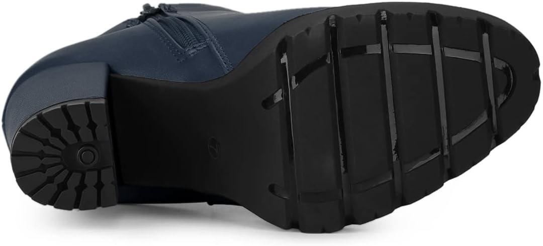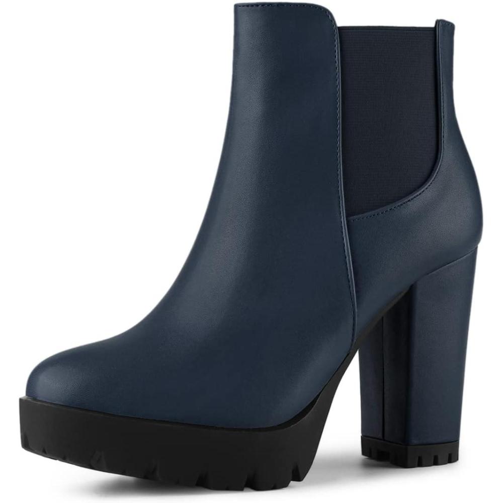 Allegra K Women’s Round Toe Zipper Block Heel Platform Ankle Boots(Navy Blue)