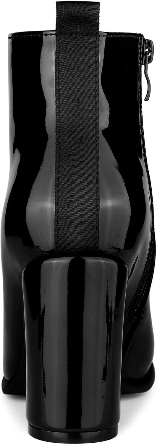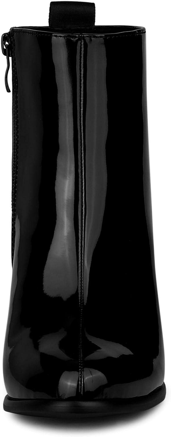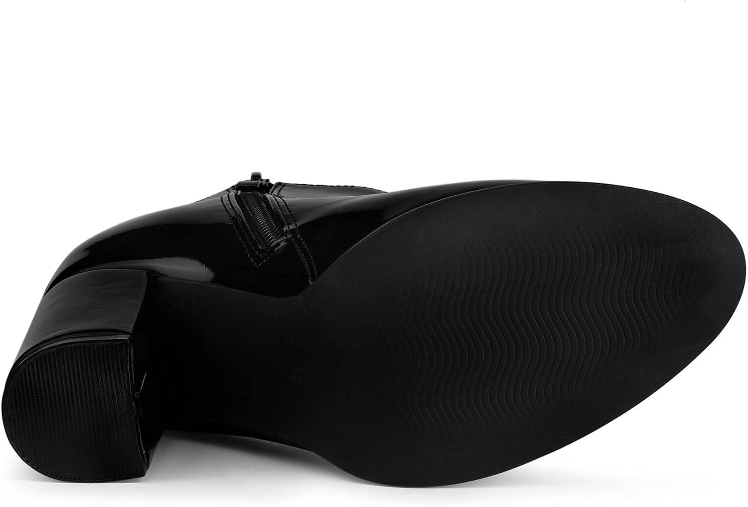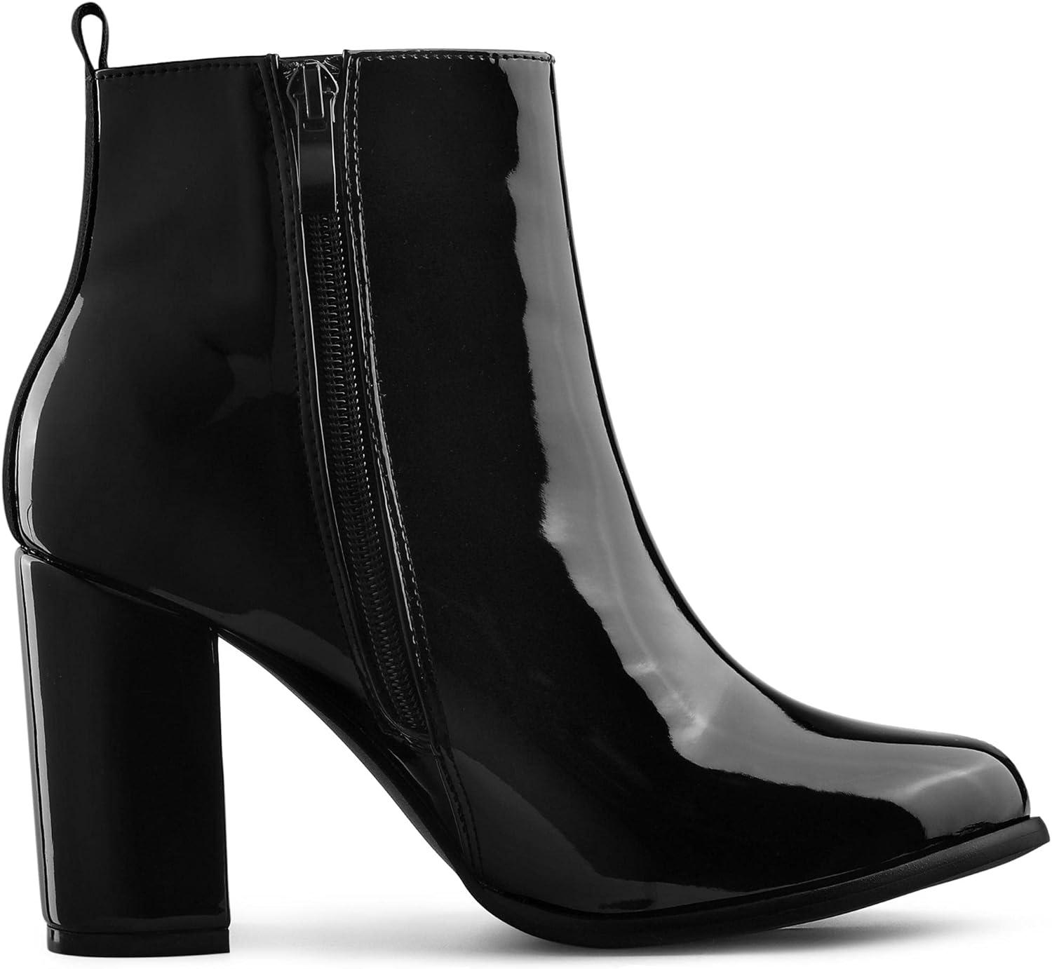 Allegra K Women’s Round Toe Zipper Chunky Heels Ankle Boots(Black)