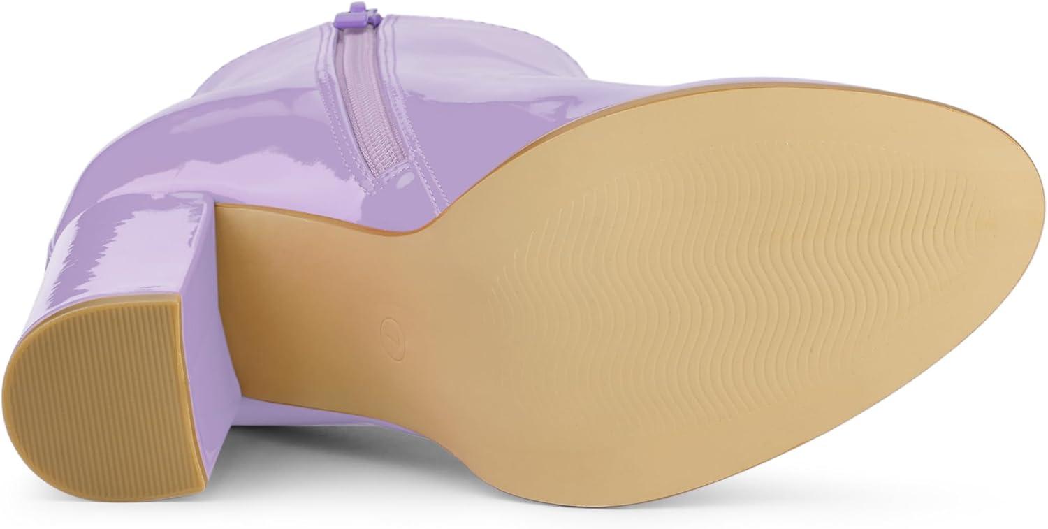 Allegra K Women's Round Toe Zipper Chunky Heels Ankle Boots(Purple)