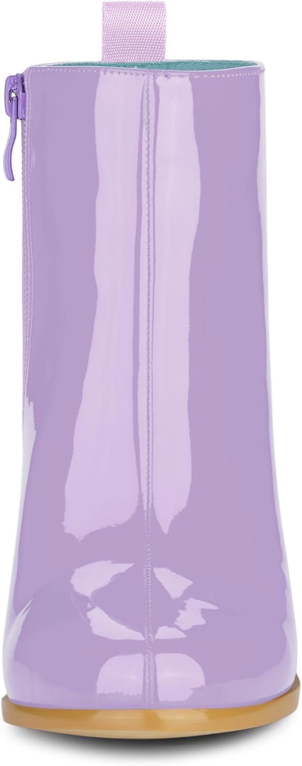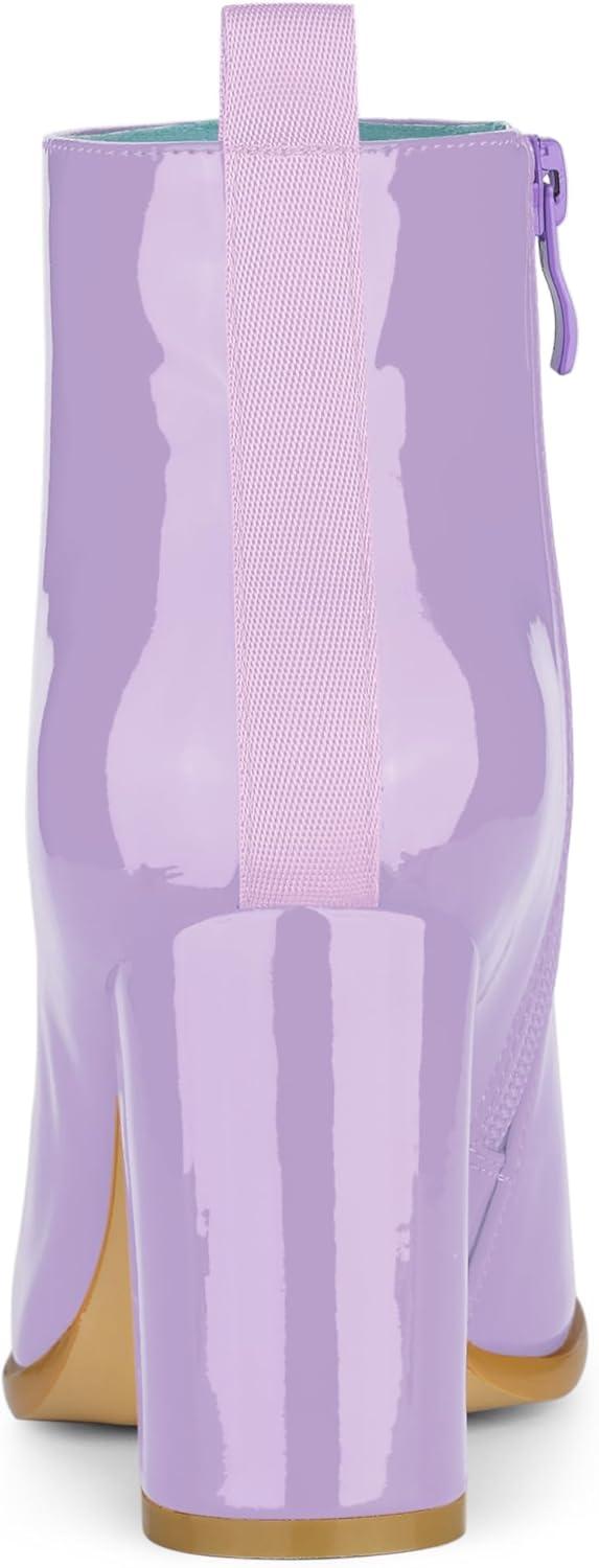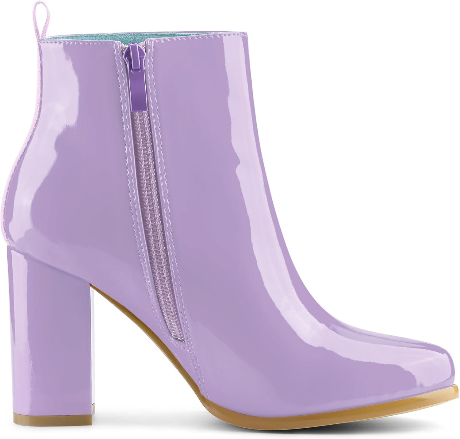 Allegra K Women’s Round Toe Zipper Chunky Heels Ankle Boots(Purple)