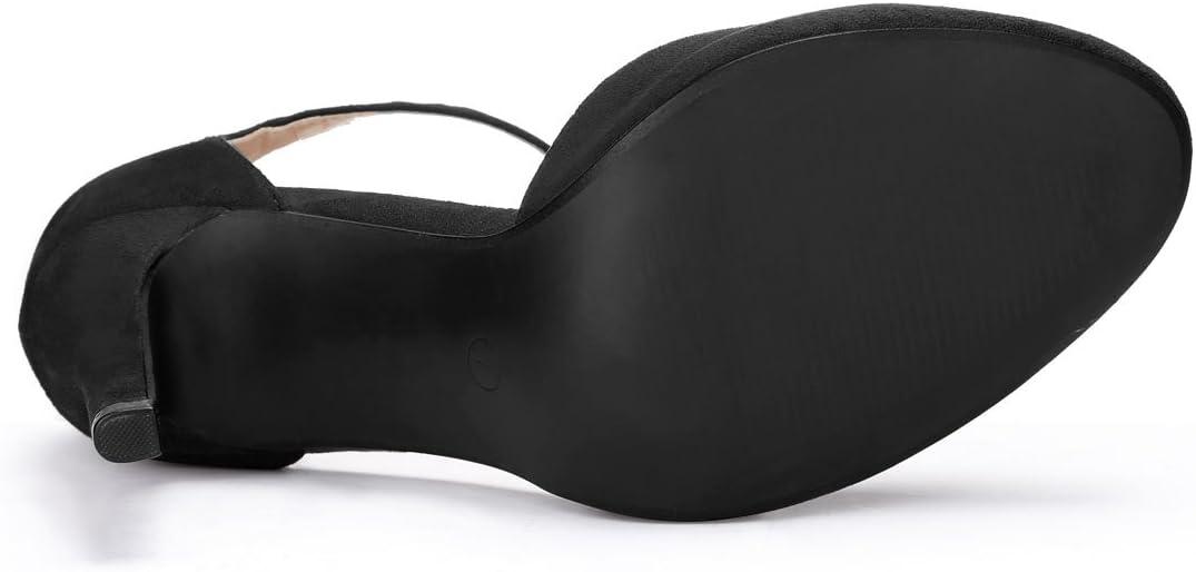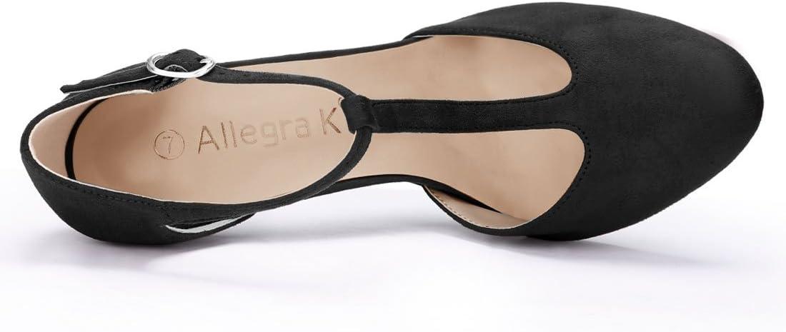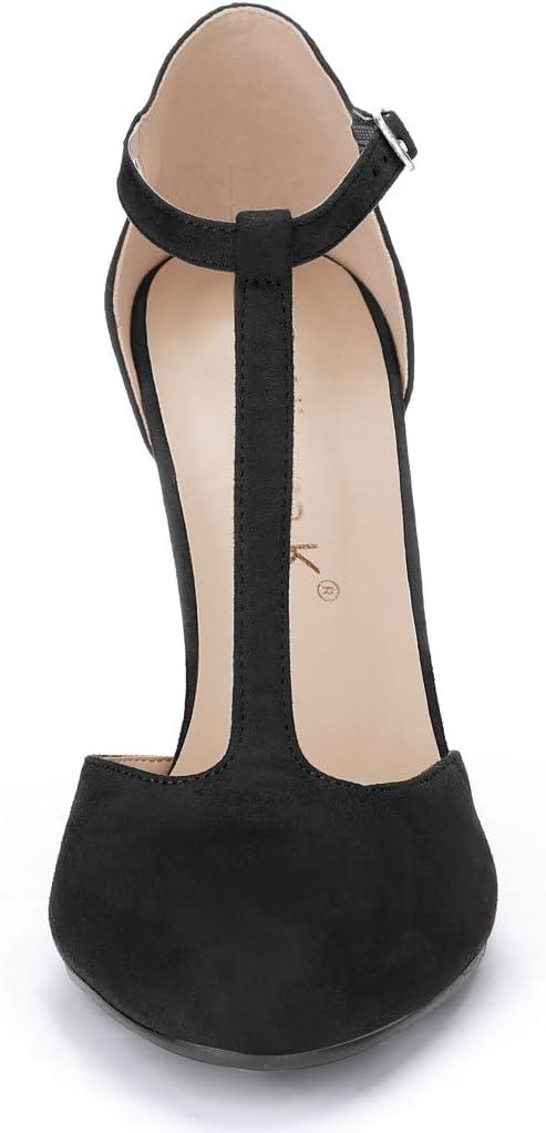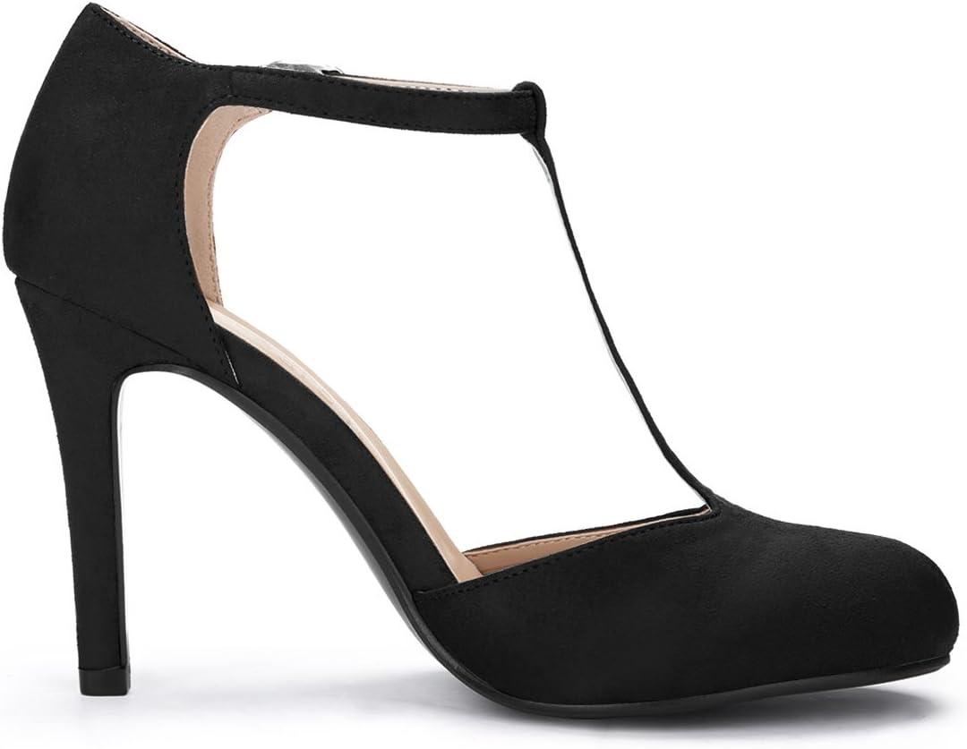 Allegra K Women's Rounded Toe Stiletto Heel T-Strap Dress Pumps(Black)