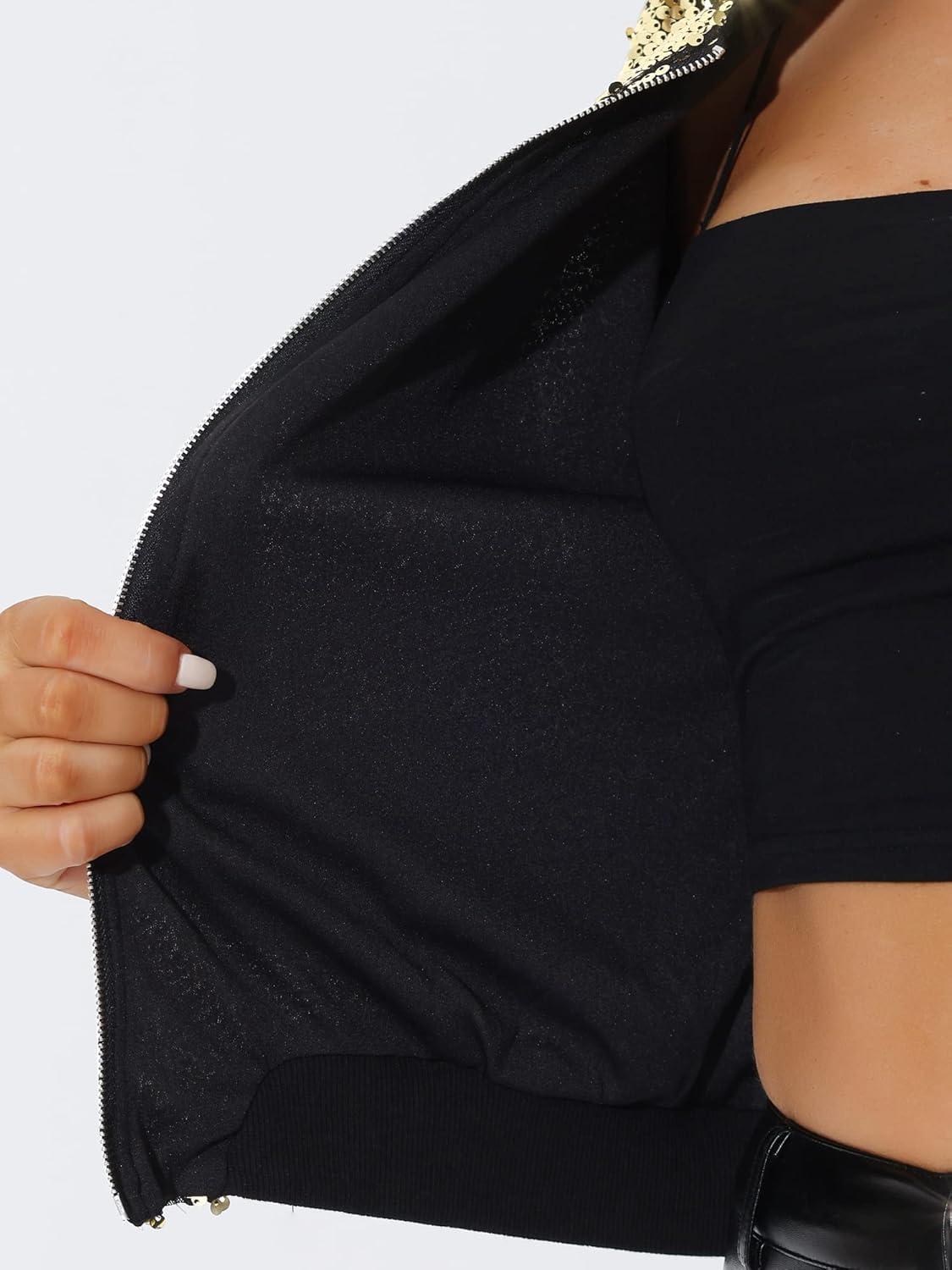Allegra K Women’s Sequin Jacket Bomber Long Sleeve Zipper Shiny Glitter Tops Sparkly Party Slitter Outfit(Gold)