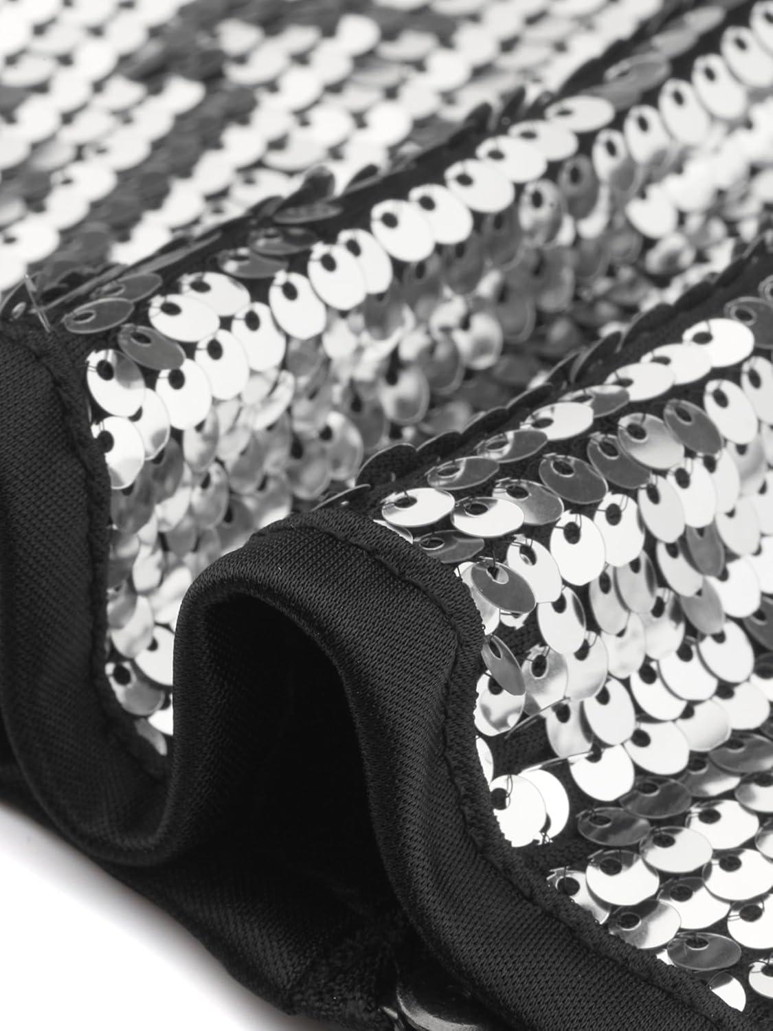 Allegra K Women's Sequin Tops Metallic Sparkle Glitter Sleeveless Camisole Tank Top Party Club Crop Tops(Black Silver)