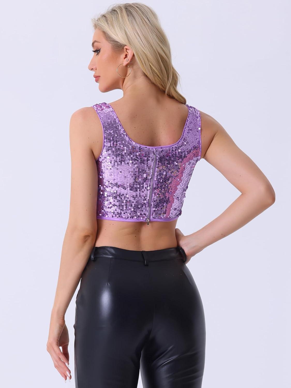 imageAllegra K Womens Sequin Tops Metallic Sparkle Glitter Sleeveless Camisole Tank Top Party Club Crop TopsLight Purple